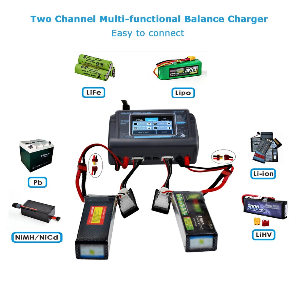 Зарядное устройство Lipo HTRC T400T240T150, Двухканальное зарядное устройство для балансировки с сенсорным экраном, зарядное устройство переменного тока 200 Вт, постоянный ток 400 Вт, зарядное устройство для радиоуправляемых моделей Игрушек