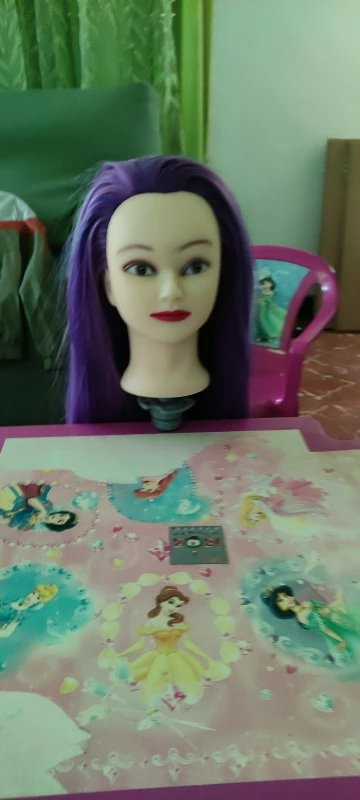 Голова прибыла очень быстро. Дочери нравится. По ее волосам очень красиво и очень мягко. Имеется хорошая толщина, и вы можете сделать красивую прическу, не допуская появления черепа. Все аксессуары сошлись с радостью, и система фиксации очень практична.