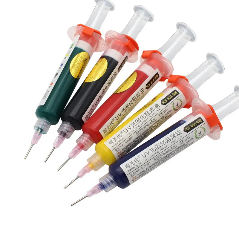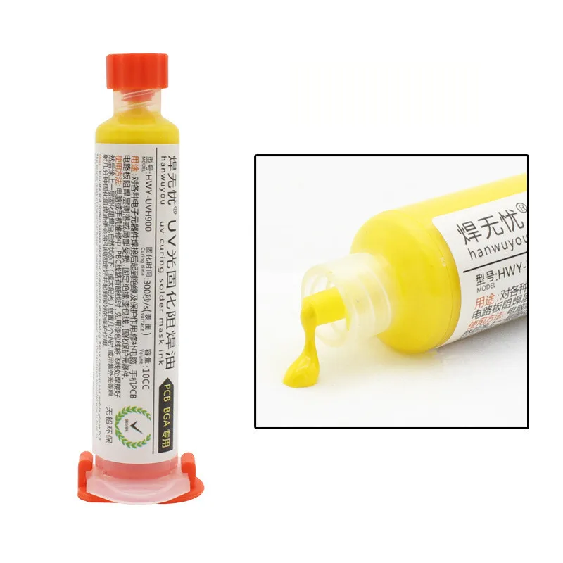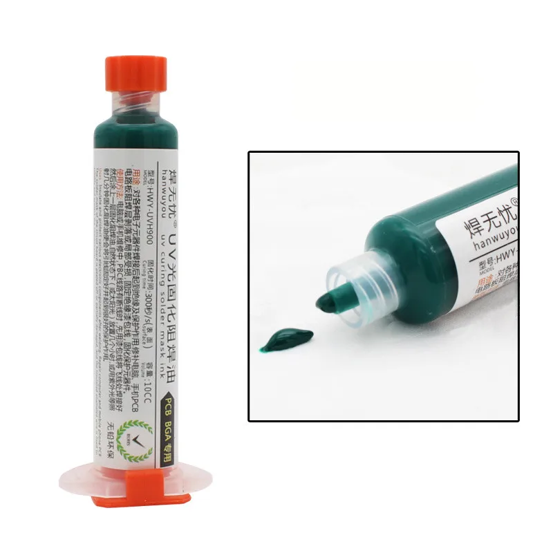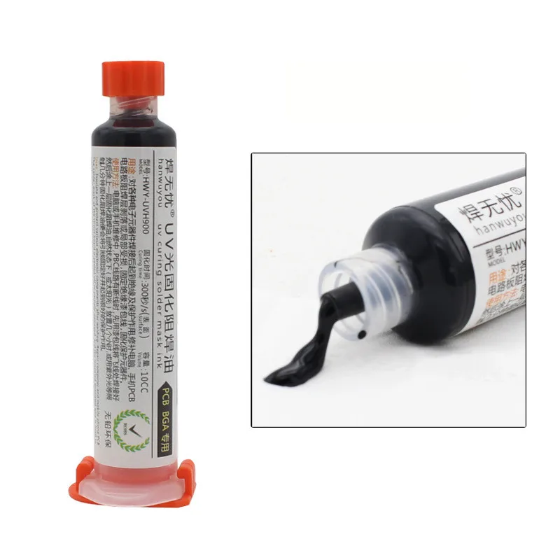 УФ припой сопротивляется PCB УФ излечимый припой отличная мачта припой маска припой сопротивлениеЭтот УФ-припой Устойчив используется для защиты следов PCB от коррозии, влаги.