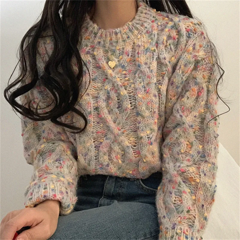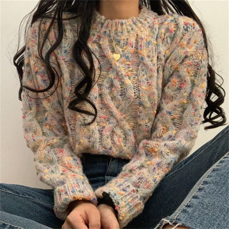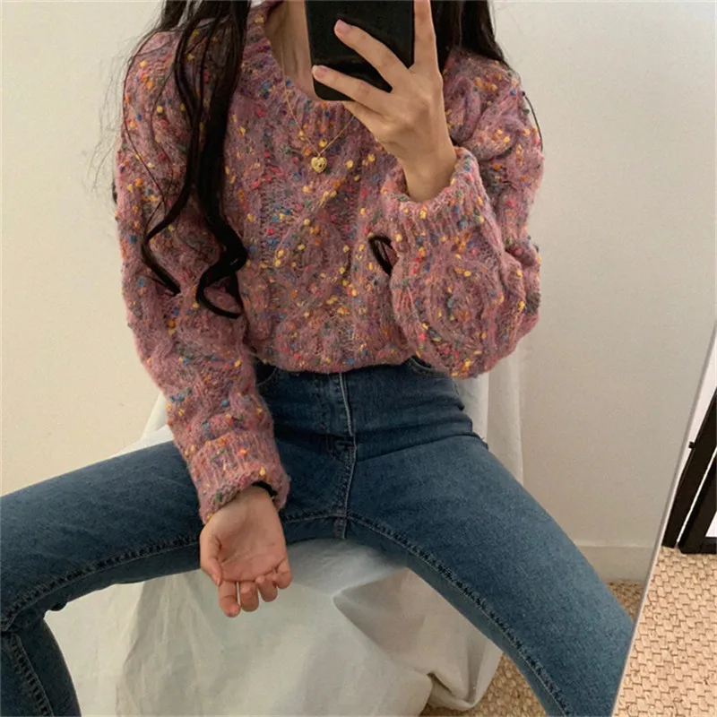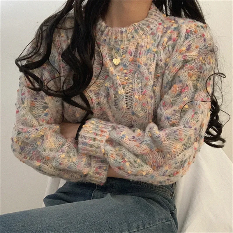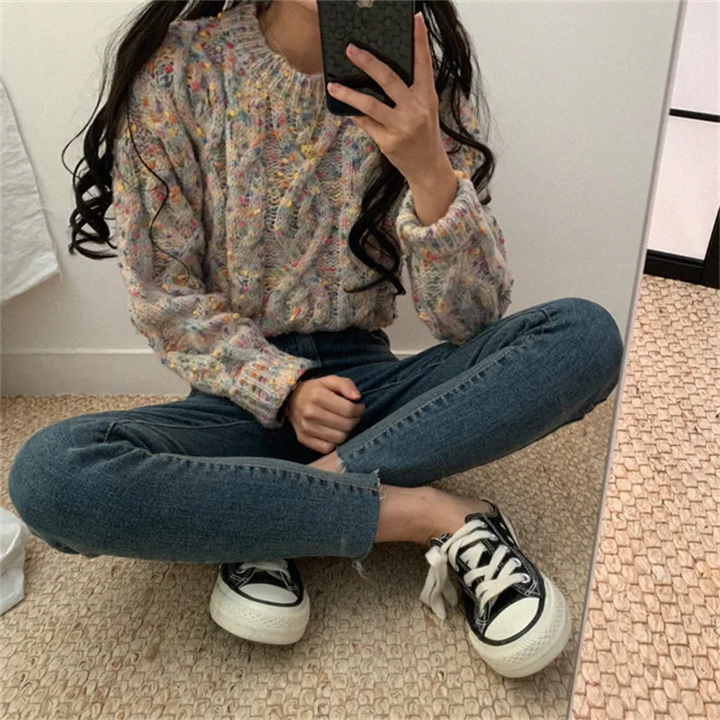 Женский свитер с длинным рукавом и круглым вырезом Alien Kitty, теплый трикотажный свитер карамельных цветов, осень 2020