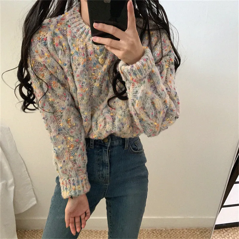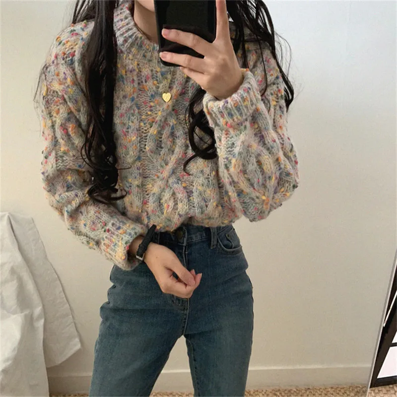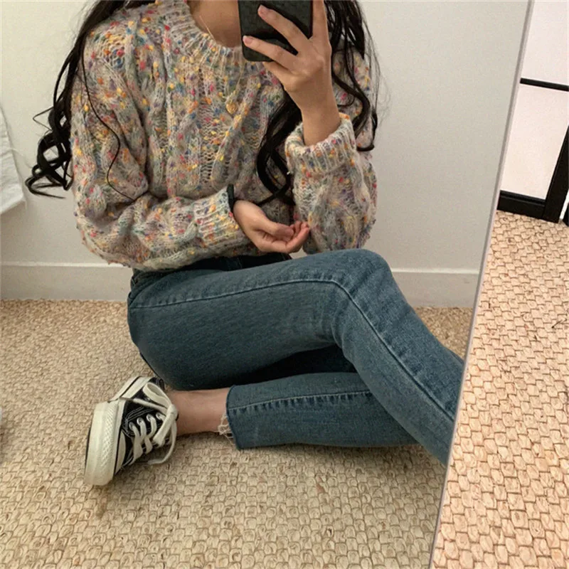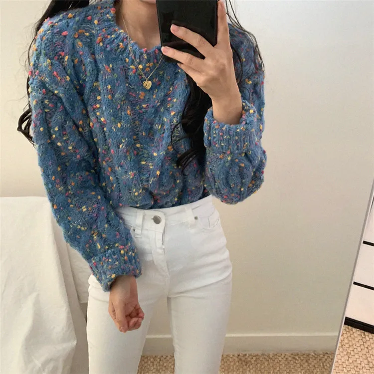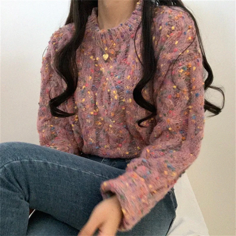 Женский свитер с длинным рукавом и круглым вырезом Alien Kitty, теплый трикотажный свитер карамельных цветов, осень 2020