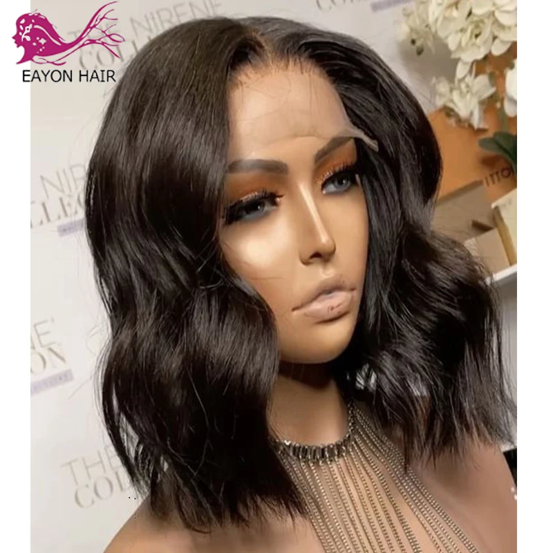 EAYON 5x5 парик на шелковой основе, Волнистые Короткие человеческие волосы, Боб, парики, плотность 180, Remy, бразильский парик на сетке 4x4 Для Женщин