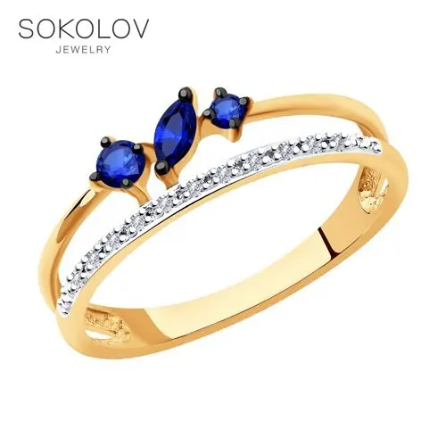 Кольцо SOKOLOV Diamonds из золота с бриллиантами и сапфирами, Золото, 585, Женское, Оригинальная продукция