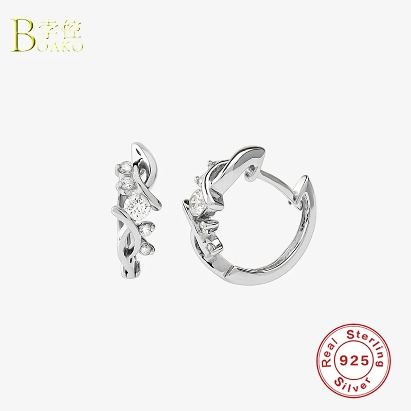 Женские серьги-кольца BOAKO из стерлингового серебра 925 пробы, роскошные серьги-обручи с цирконием, ювелирные украшения для пирсинга S925