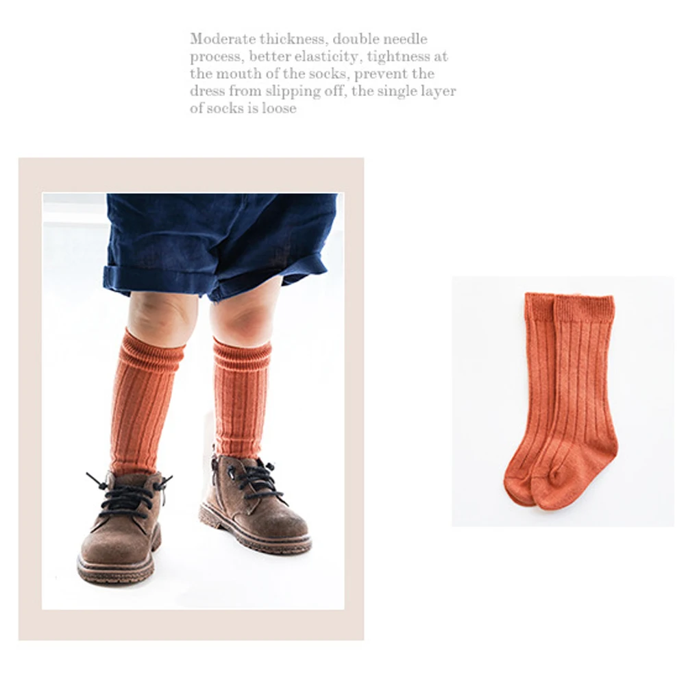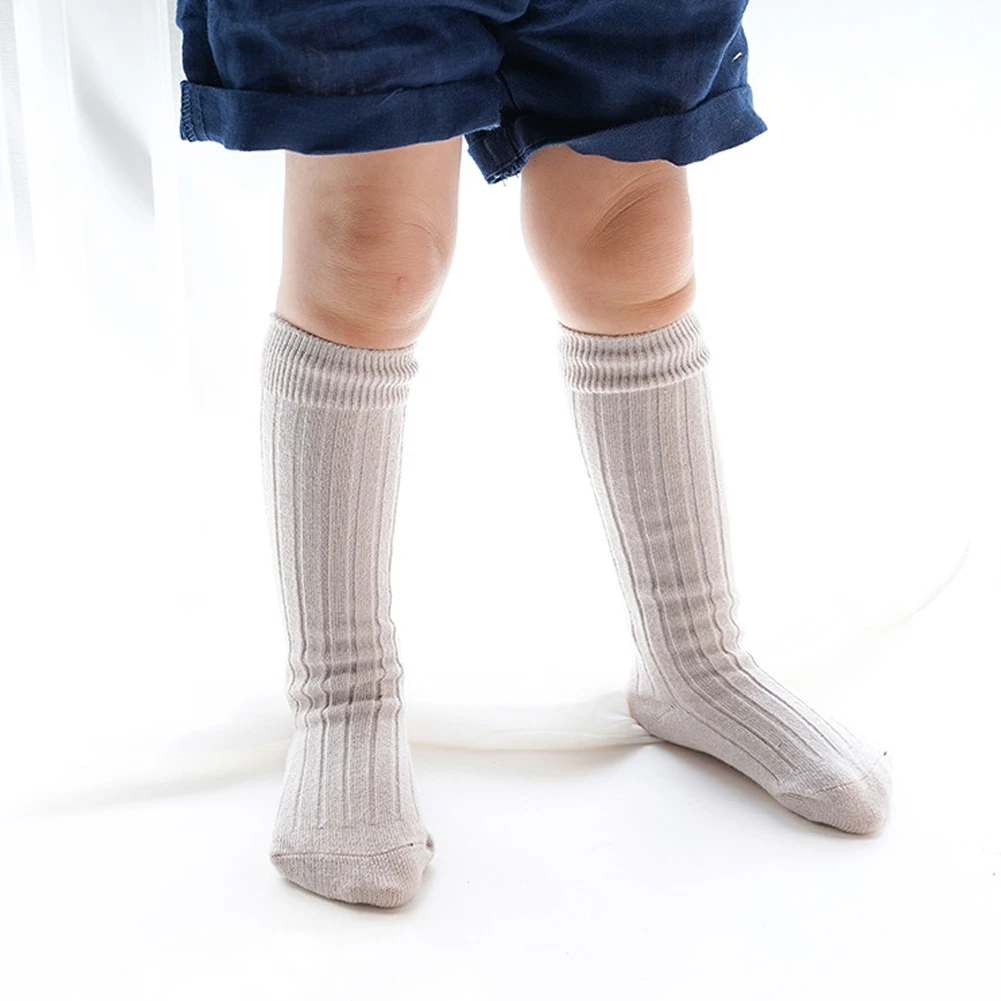 2020 г., однотонные противоскользящие Вязаные гольфы для маленьких девочек и мальчиков от 0 до 5 лет Хлопковые гольфы