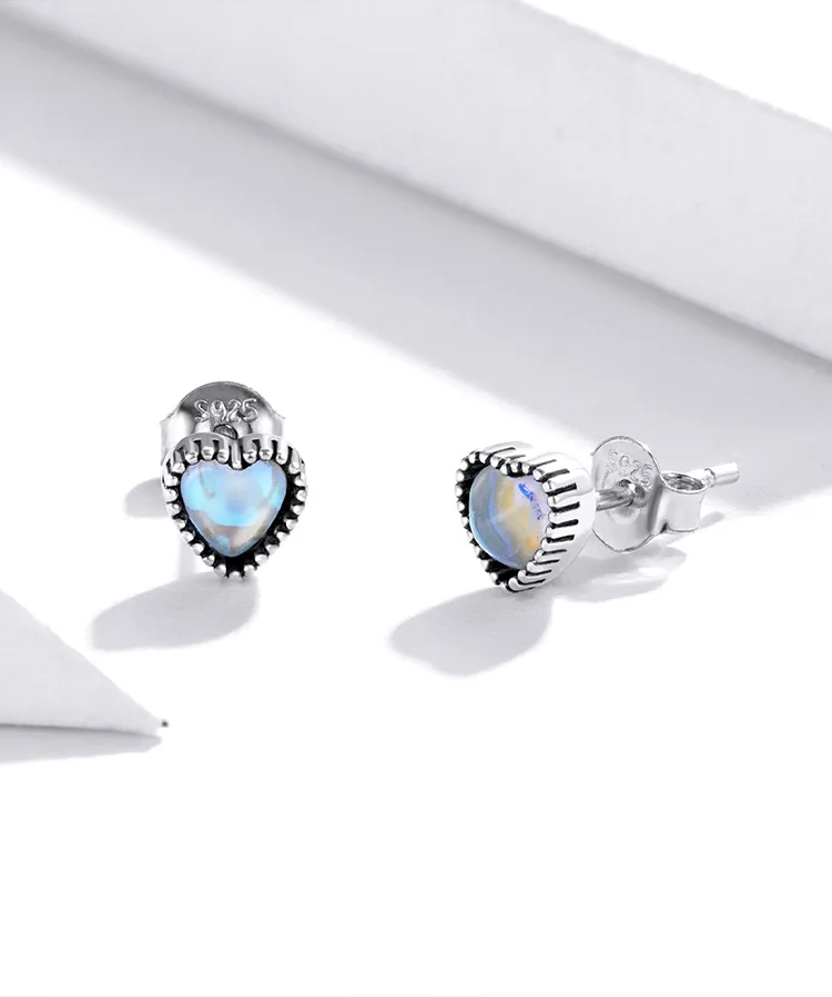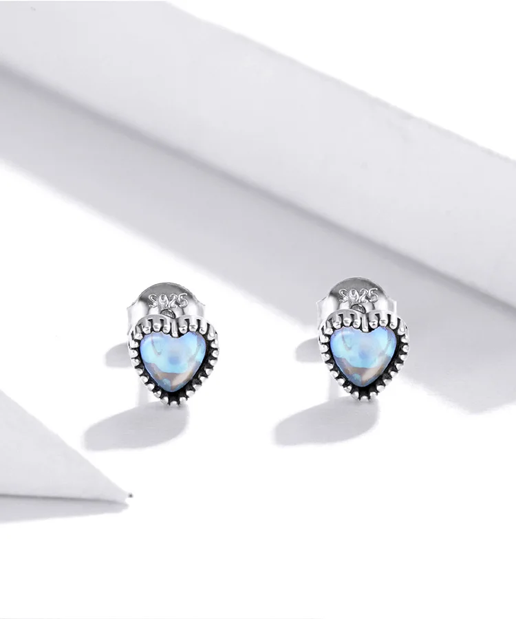 Серьги-гвоздики женские из серебра 925 пробы с сердечком из стекла