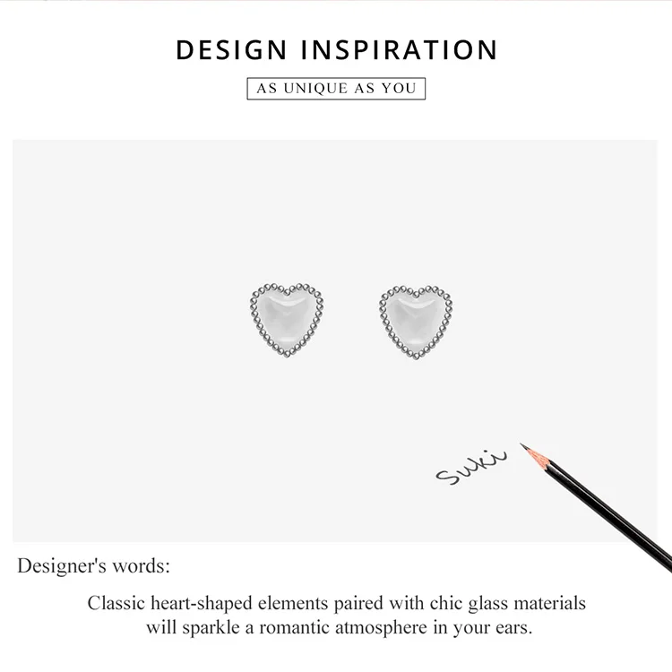 Женские серьги-гвоздики из серебра 925 пробы в форме сердца