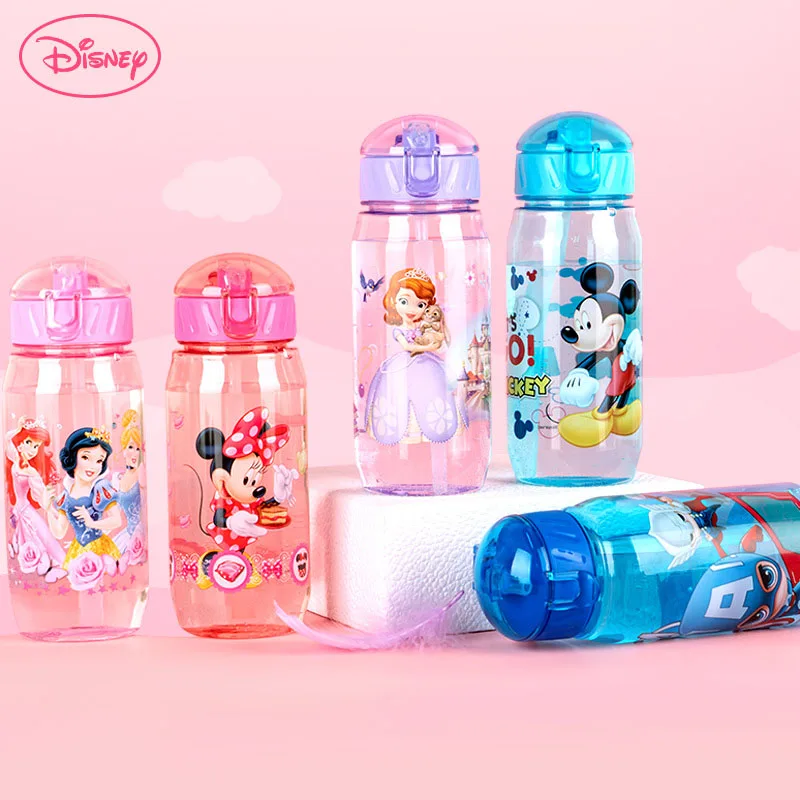 Детская пластиковая бутылка для питьевой воды Disney с героями мультфильмов Микки и Минни, Капитан Америка, София, соломенная чашка, портативная бутылка для прямой питьевой воды