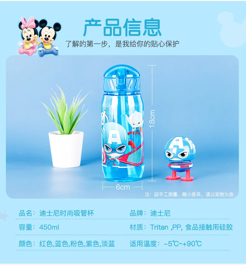 Детские спортивные бутылочки Disney с изображением миннимикки Мауса, с соломинкой, для девочек, принцесс Софии, Капитана Америки