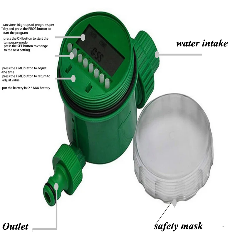 Удобный для пользователя:16 групп времени полива могут быть настроены в день; Различные программы для ваших особых требований: одиночная и мульти программа, регулярные и цикл, программа один день или несколько дней. Универсальное Использование:Подходит для контроля ирригационных систем в отечественном секторе, таких как разбрызгиватель газонов, спринклеры, теплицы и многое другое. Питание от аккумулятора:Требуется только 2 батарейки AAA; Не подключаются к розетке, вы можете использовать его в любом уголке вашего сада. Спецификация: Материал: АБС-пластикЦвет: зеленый, как на картинке Батареи:2 батарейки ААА (не входит в комплект)