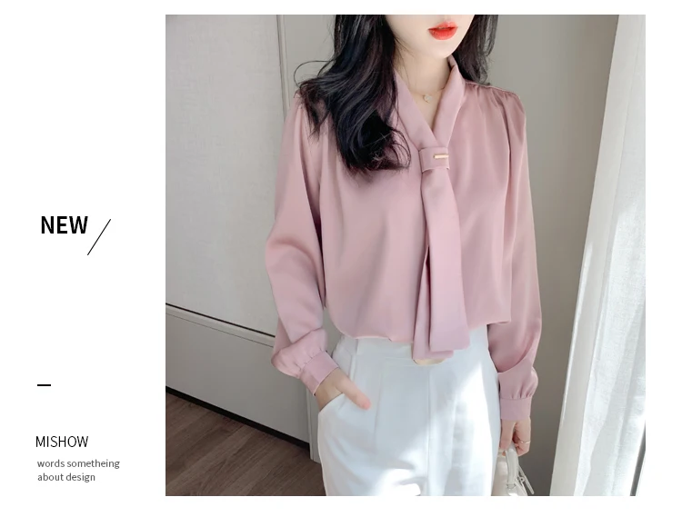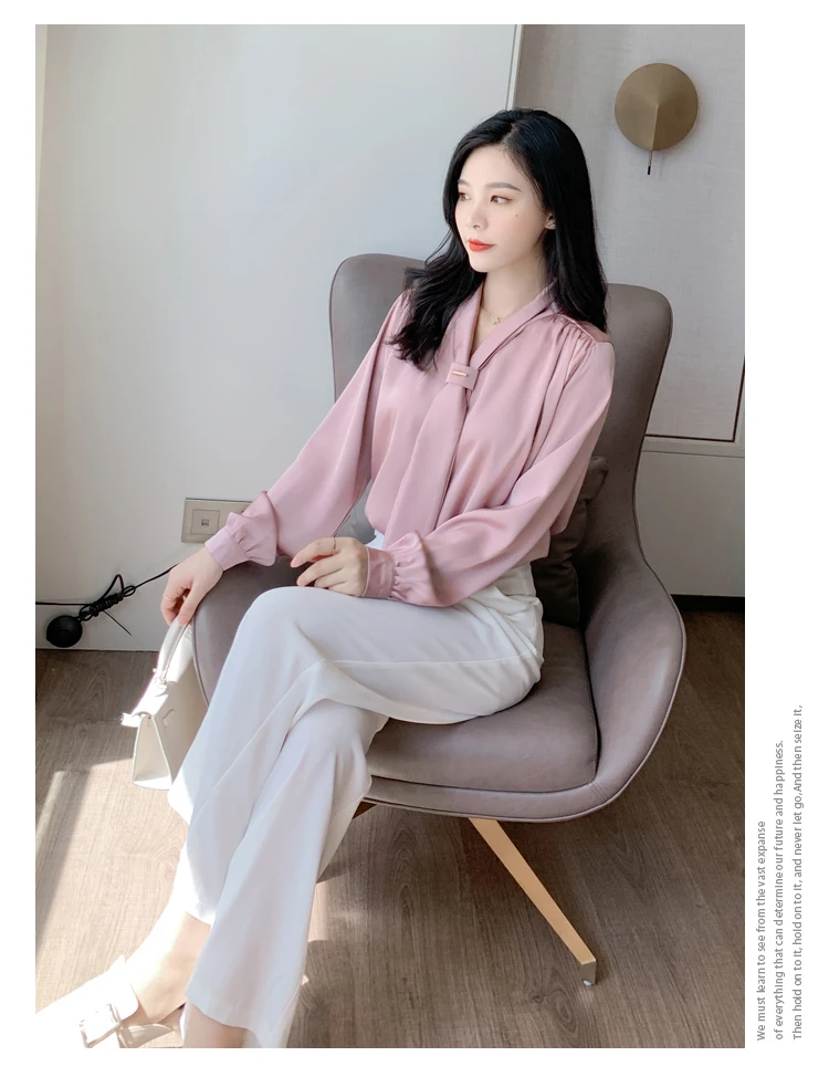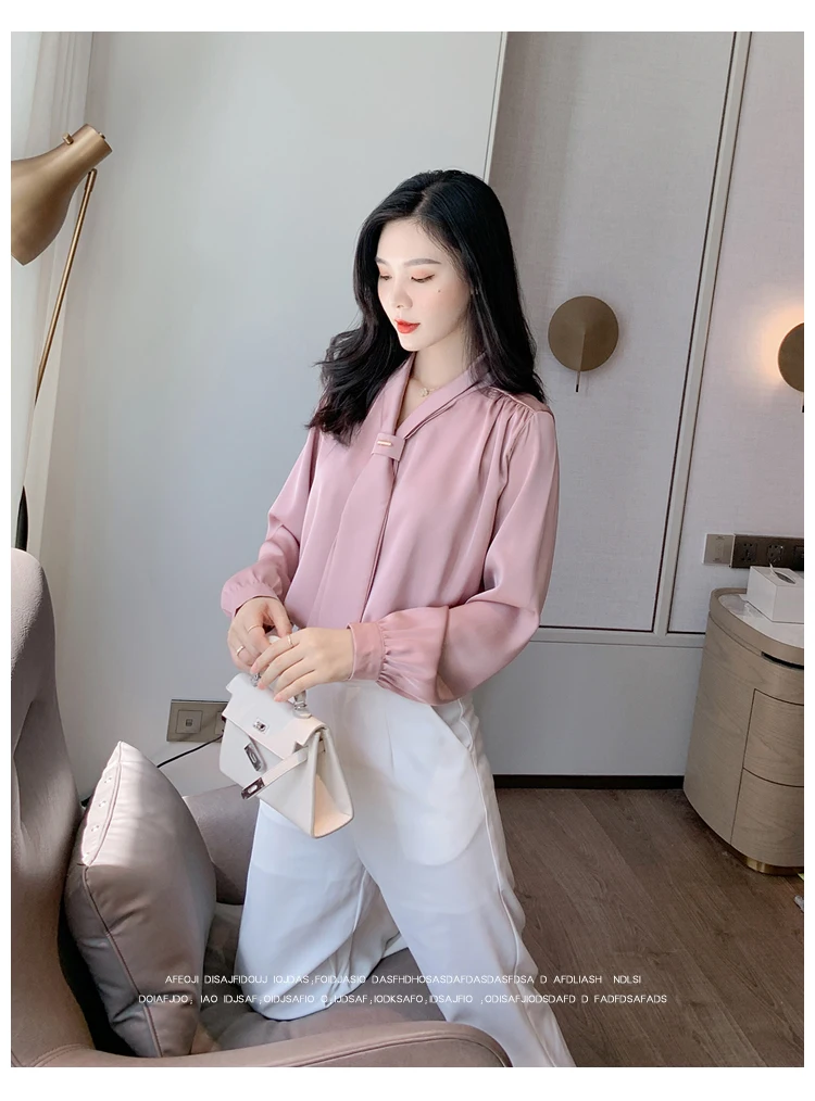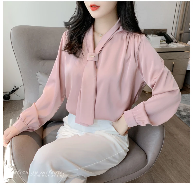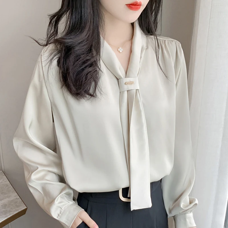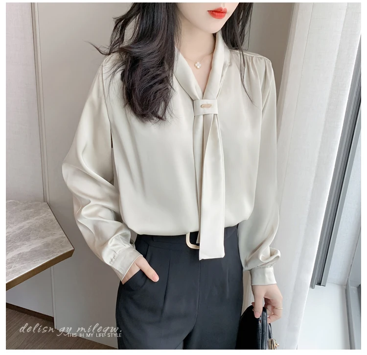 Женская атласная рубашка, Осенние шифоновые Женские топы и блузки, ...