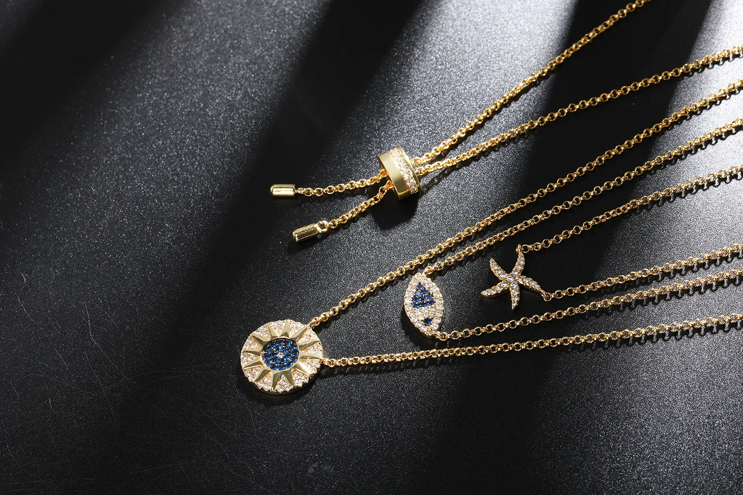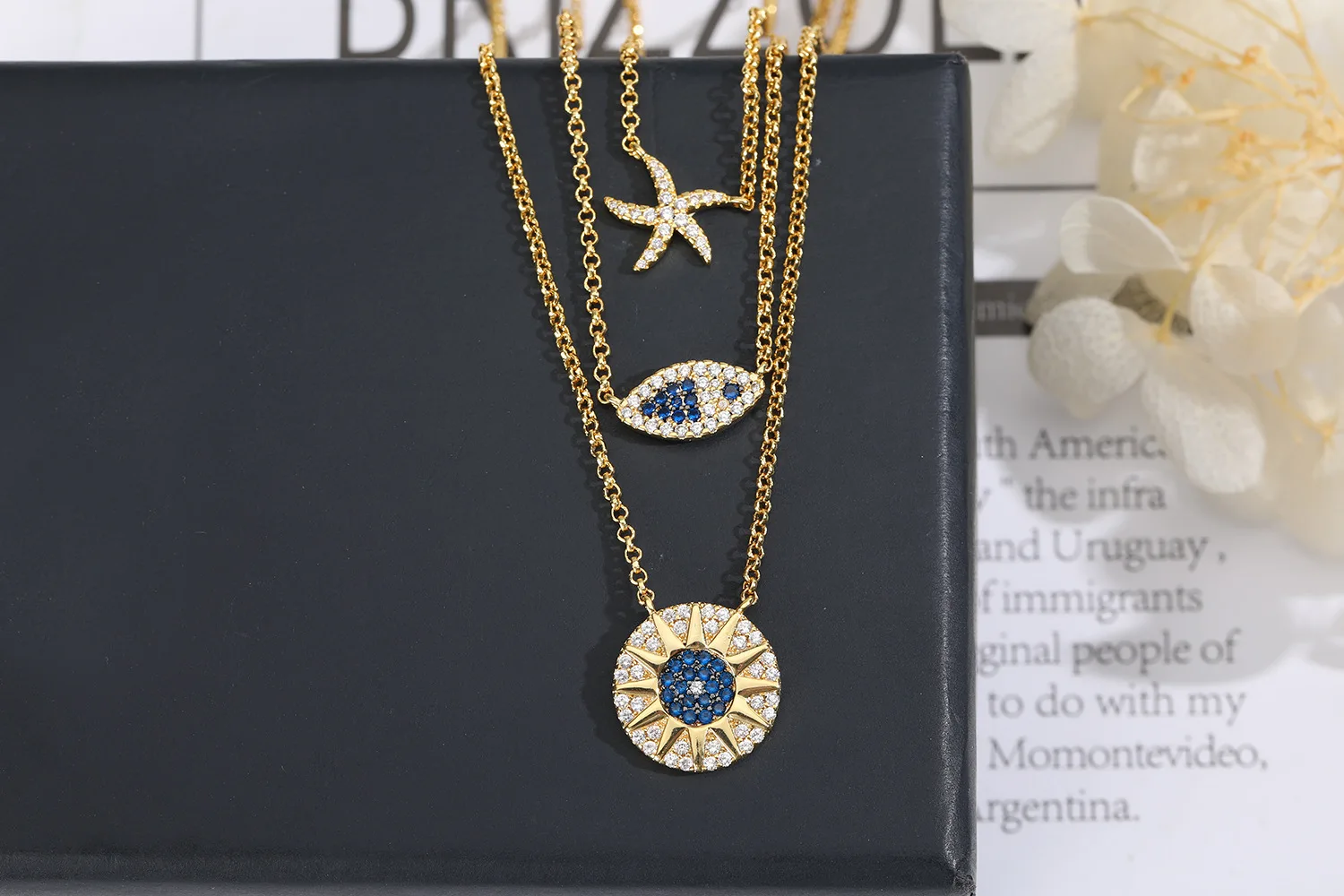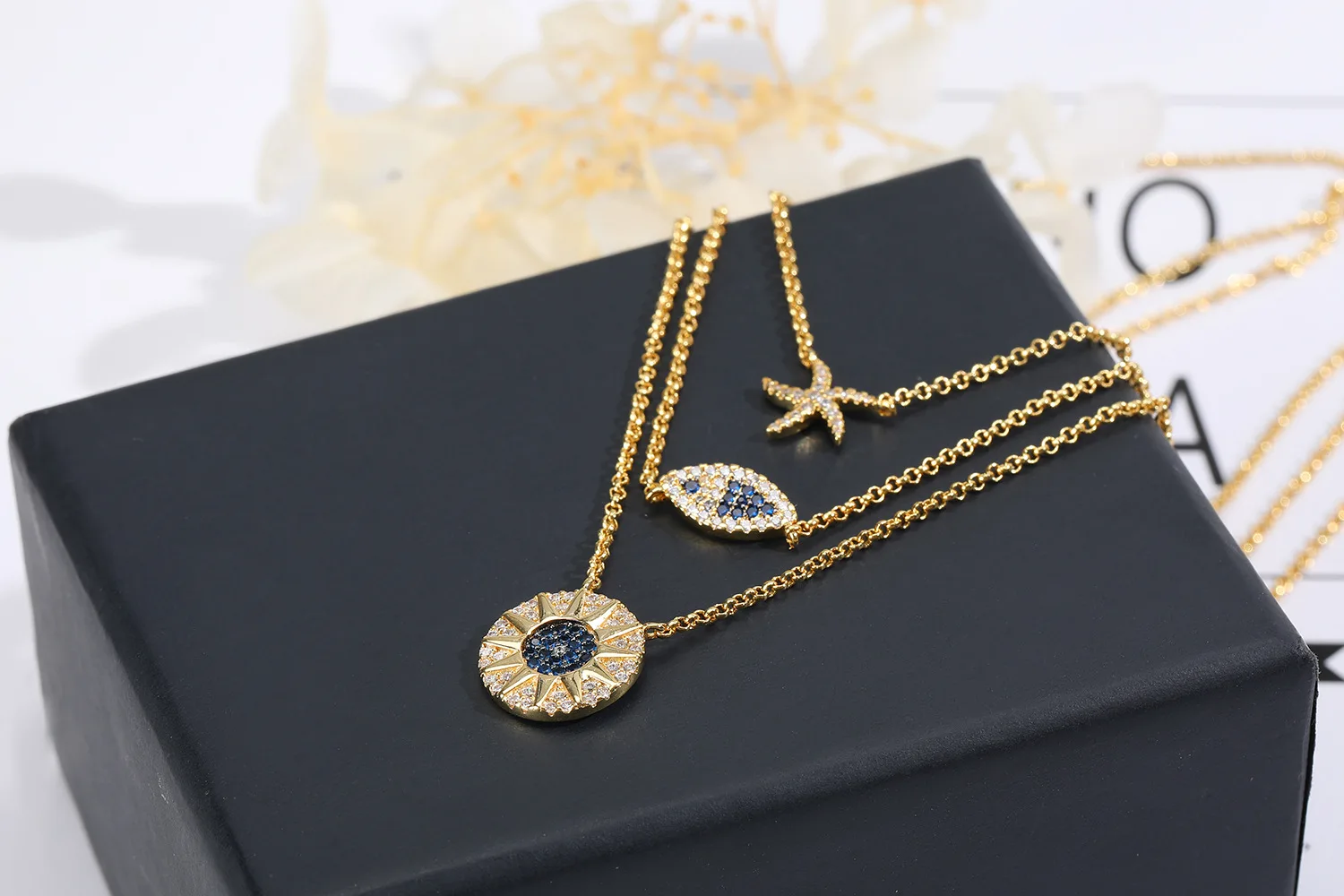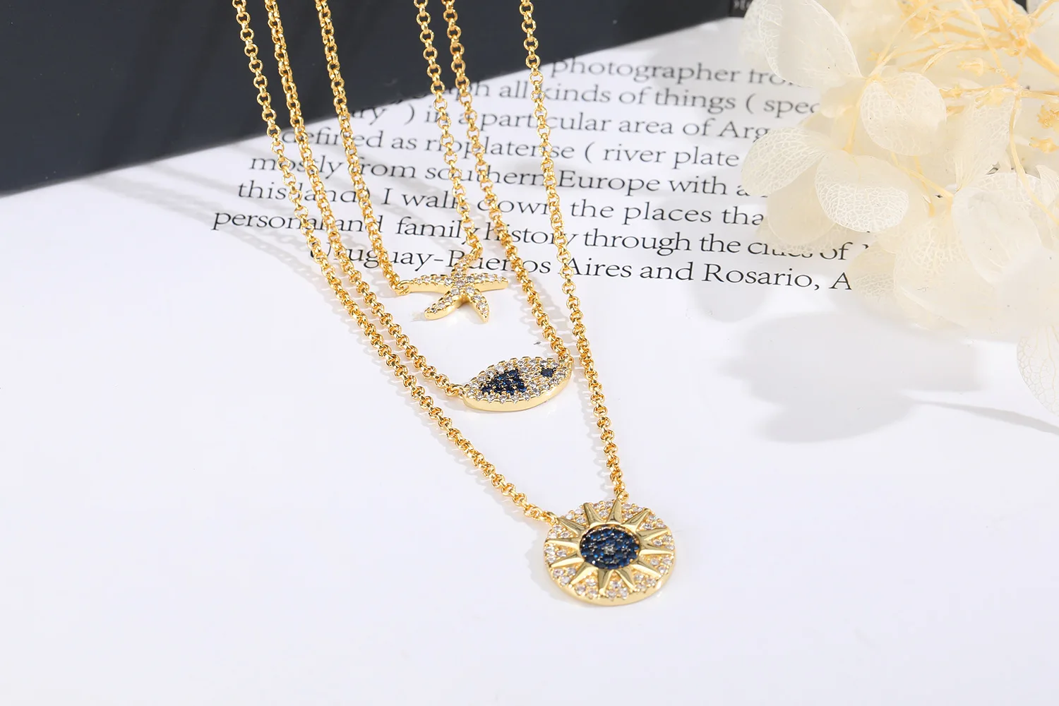 Ожерелье трехслойное в стиле тропического океана, колье с рыбьей морской звездой для леди, ювелирное изделие с круглым глазом для праздника, летнего пляжа Zk30