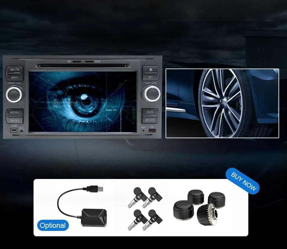 TPMSУниверсальная система контроля давления в шинах AndroidДля OS DVD USB интерфейсВнутренний дополнительный для всех автомобилей