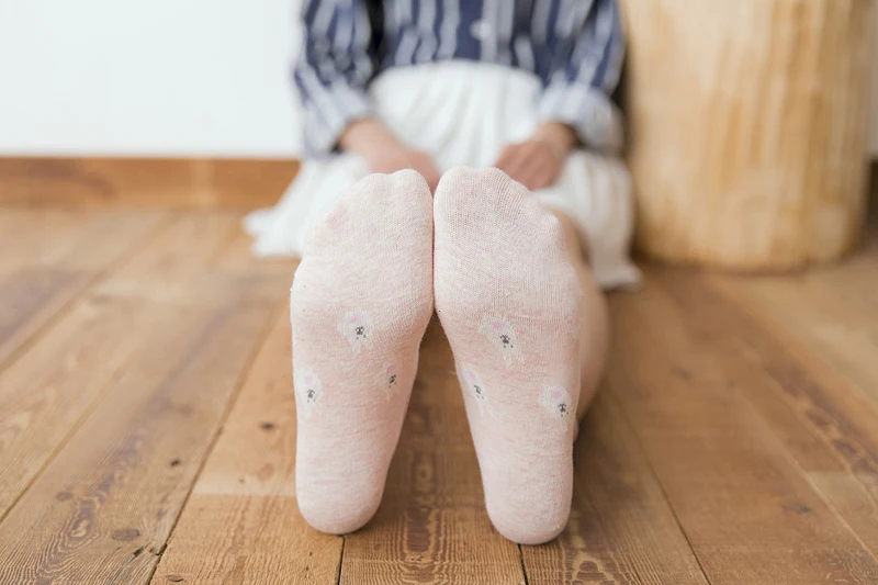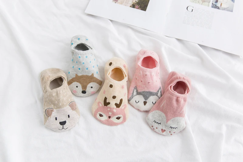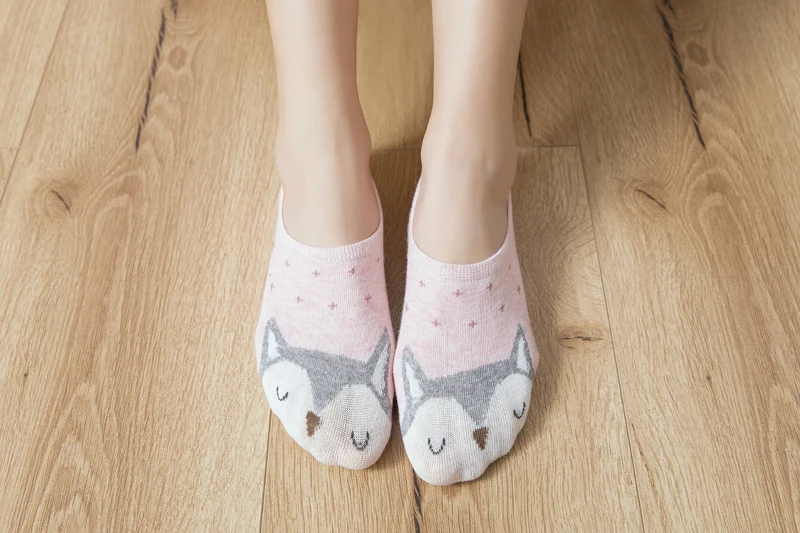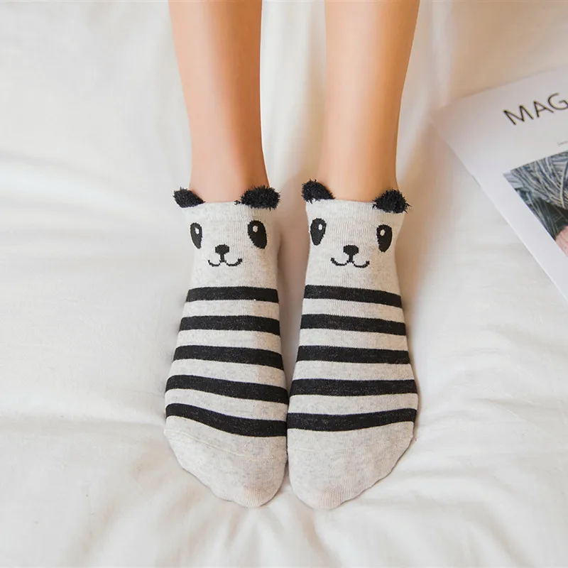 Носки женские хлопковые короткие с рисунком кошки, 5 пар