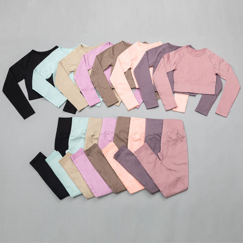 Спортивные Леггинсы с высокой талией, Женская Спортивная одежда для спортзала, бесшовный Женский костюм для фитнеса и йоги, Высокоэластичный комплект для тренировок, спортивный бюстгальтер с мягкими чашечками