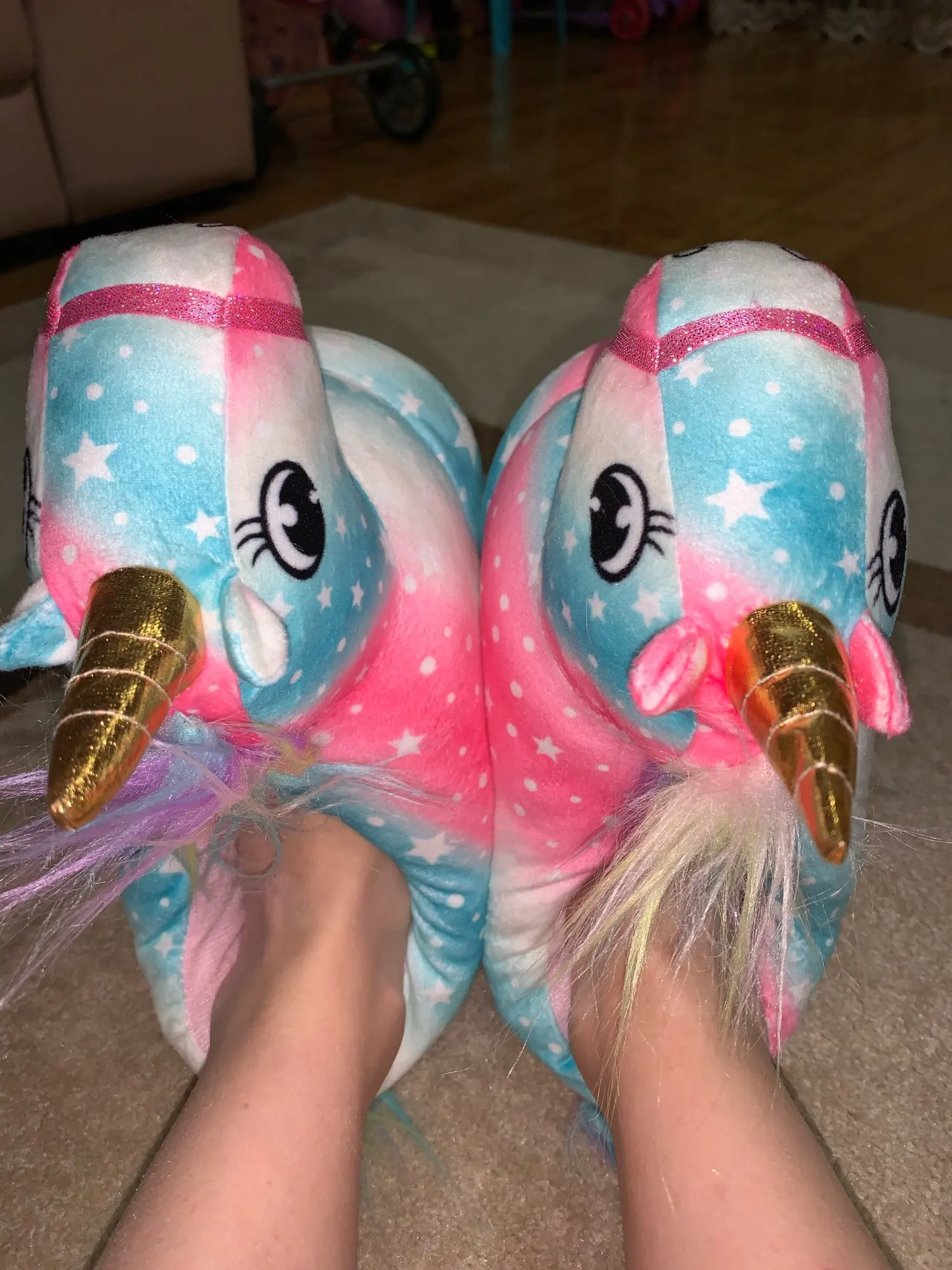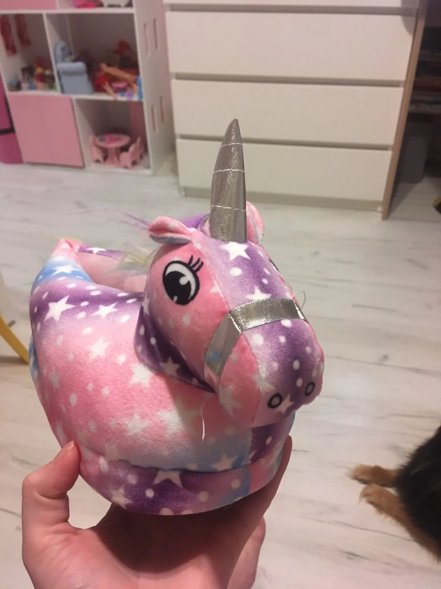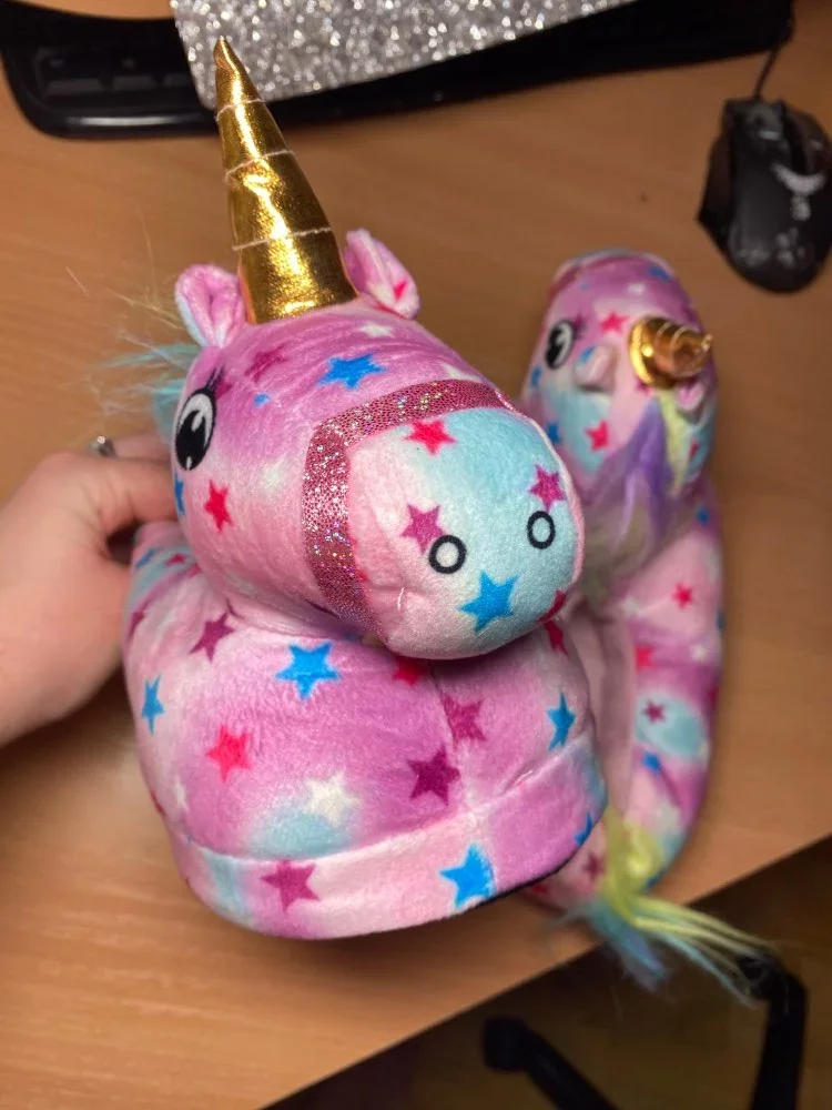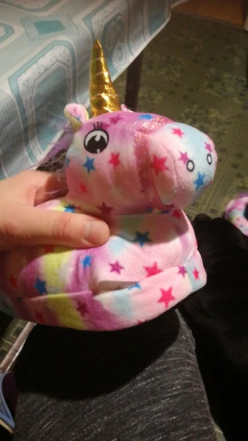 хорошие такие, мягкие, теплые тапочки. купила дочке под кугуруми единорога. уверена, что ей понравятся