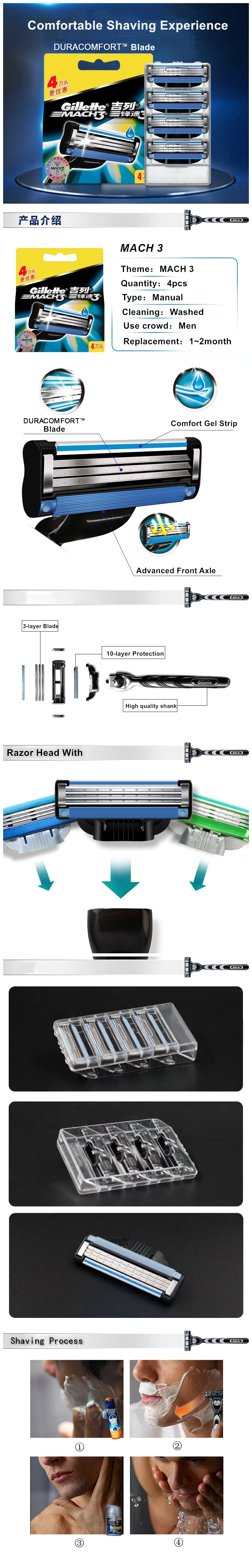 Бритвенные лезвия Gillette Mach3 для мужчин, 4 шт.