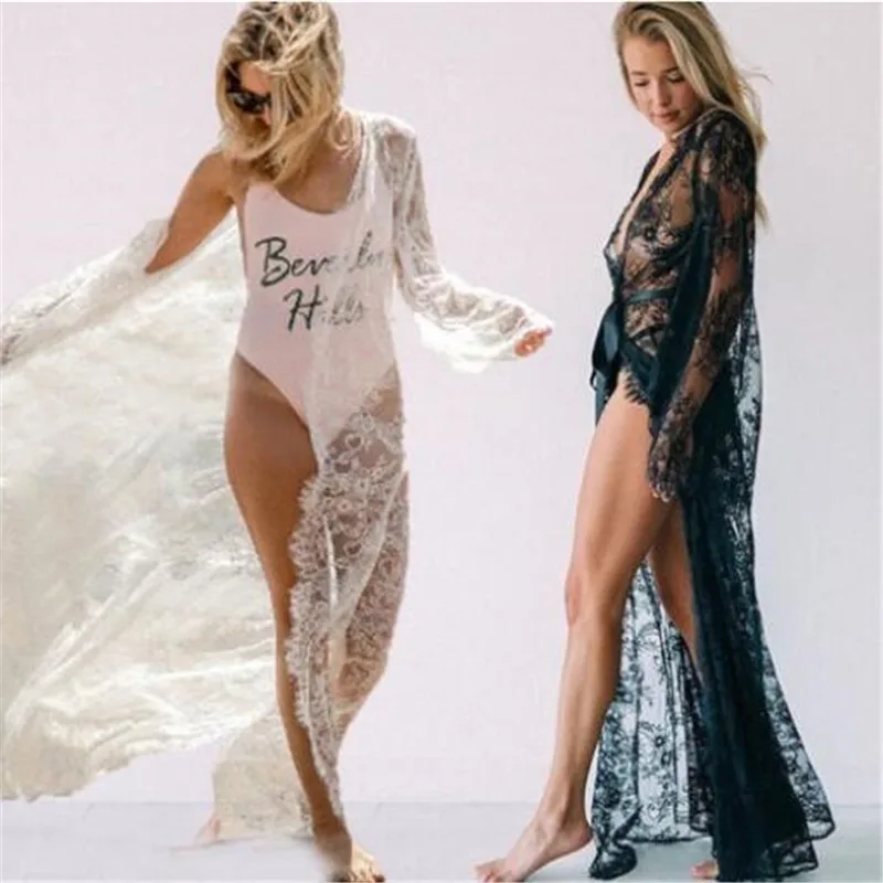 Накидки для бикини пляжное саронг белое кружевное длинное Кимоно Ка...