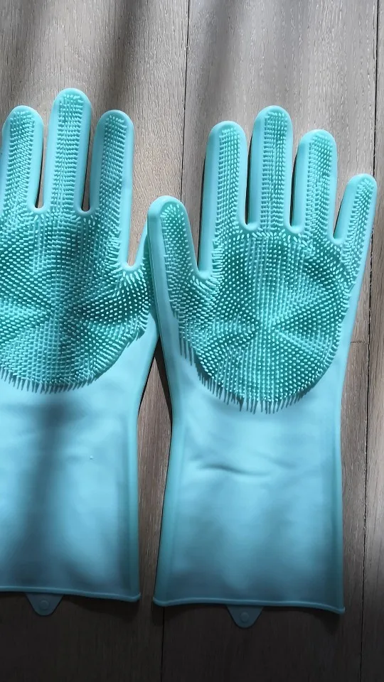 1. Эти мягкие перчатки для мытья посуды изготовлены из высококачественного и экологически чистого силикона. Пищевой силикон