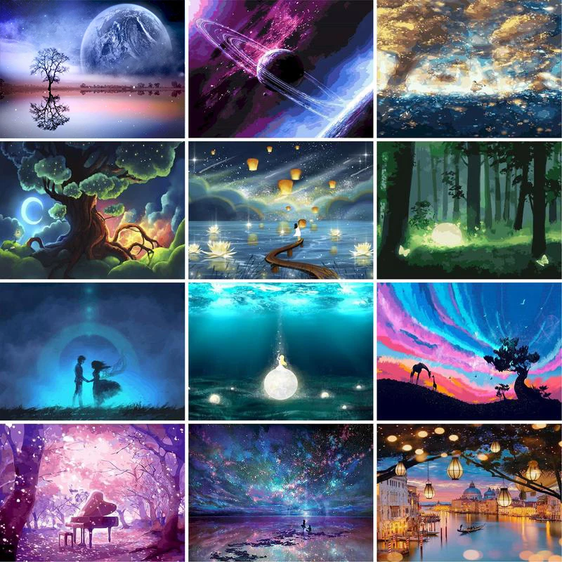 Картина для рисования по номерам на холсте, абстрактные пейзажи