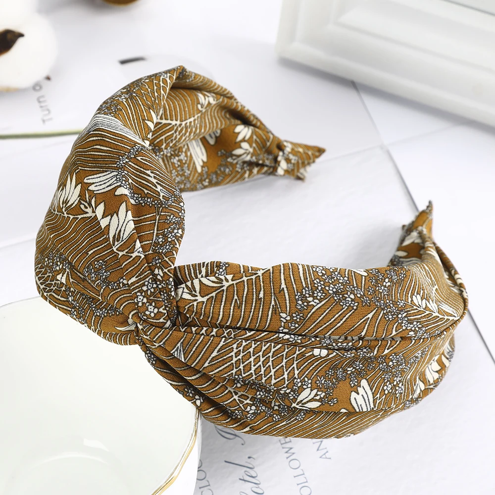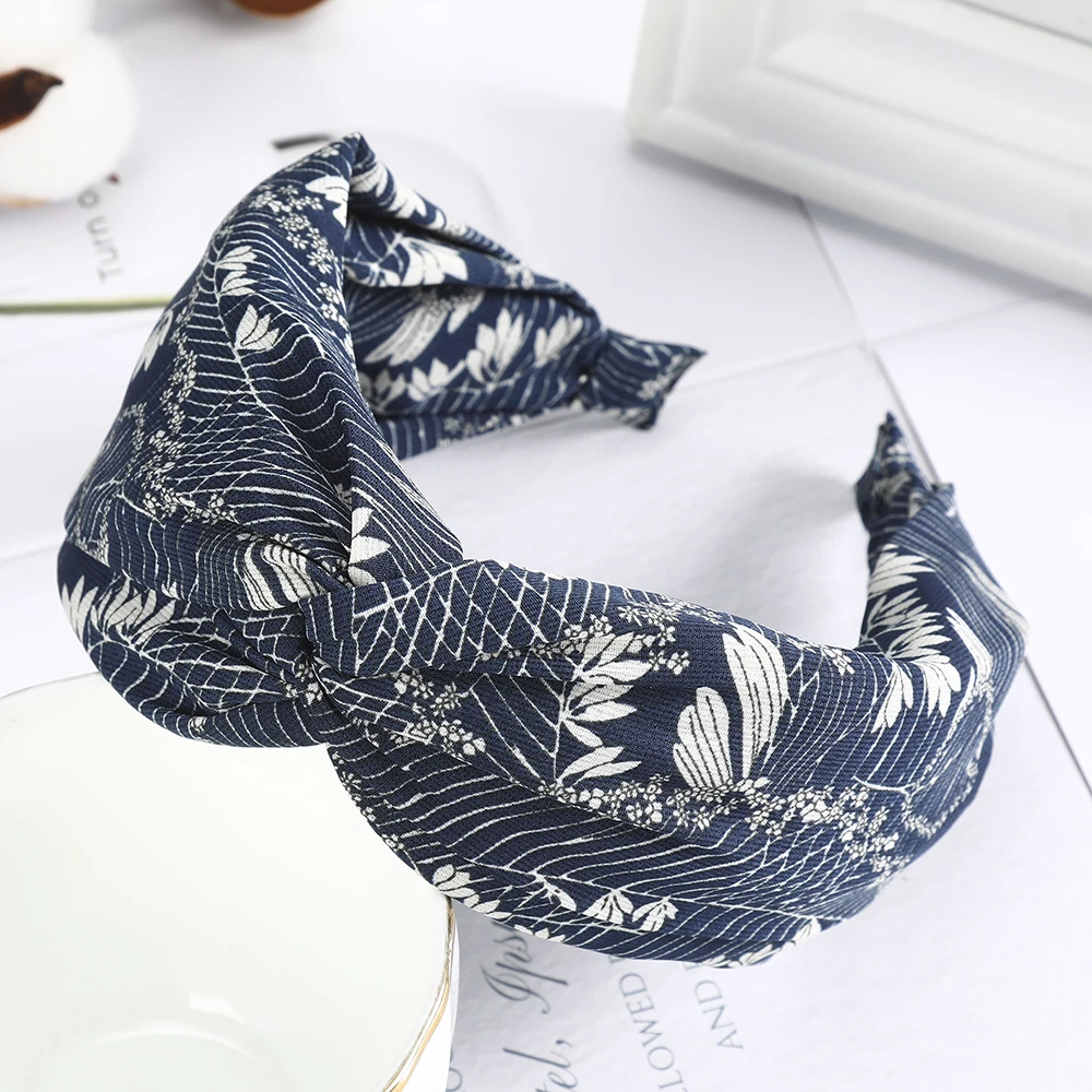 Ободок для волос Haimeikang, Женский широкий обруч с тканевым принтом, винтажный элегантный ободок