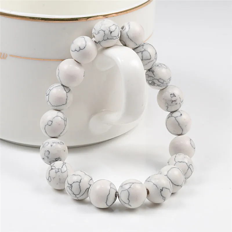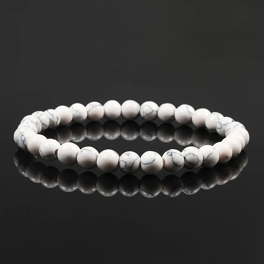 Классический белый браслет из натурального камня 6 мм, с бусинами, ...