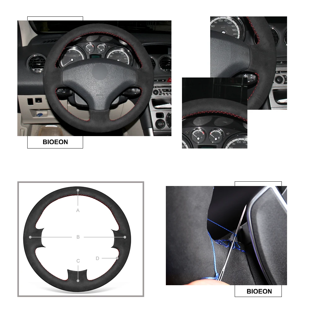 Сшитые вручную черные синтетические замшевые Автомобильные Чехлы На Руль для Peugeot 308 2007 2008 2009 2010 2011 2012-2013 408 2012-2014