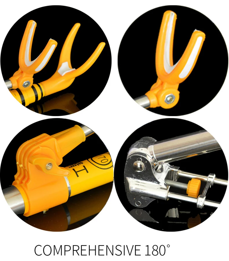 Основная информация Изделие: держатель удочки из углеродного волокна Материал: углеродное волокно + нержавеющая сталь Длина; 1,7 м (желтый) 2,1 м (красный) 2,4 м (синий) 1,7 M | Желтый | Длина в сложенном виде: 38 см | Секций: 7 | Вес скобы: 156 г | Вес интервала: 163 г 2,1 M | Красный | Длина в сложенном виде: 44 см | Секций: 7 | Вес скобы: 167 г | Вес интервала: 163 г 2,4 M | Blue | Длина в сложенном виде: 49 см | Секций: 7 | Вес кронштейна: 176,5 г | Вес интервала: 163 г Примечание: измерения выполнены вручную, поэтому данные могут незначительно отличаться. Особенность 1, корпус из углеродного волокна, он легкий и прочный, диаметр 2 см, намного больше, чем раньше. 2. Удлините заземление из нержавеющей стали, он прочнее при вставке заземления. 3, прочный передний клаксон, с нескользящим ковриком для защиты вашей удочки и предотвращения скольжения. 4, задний гудок, Поворот на 360 градусов, регулировка на 90 градусов. 5, ручка из нержавеющей стали, антикоррозийная, в нее можно вставлять землю, рыболовный стул и рыболовный ящик. Посылка входит 1 шт. x держатель для удочки
