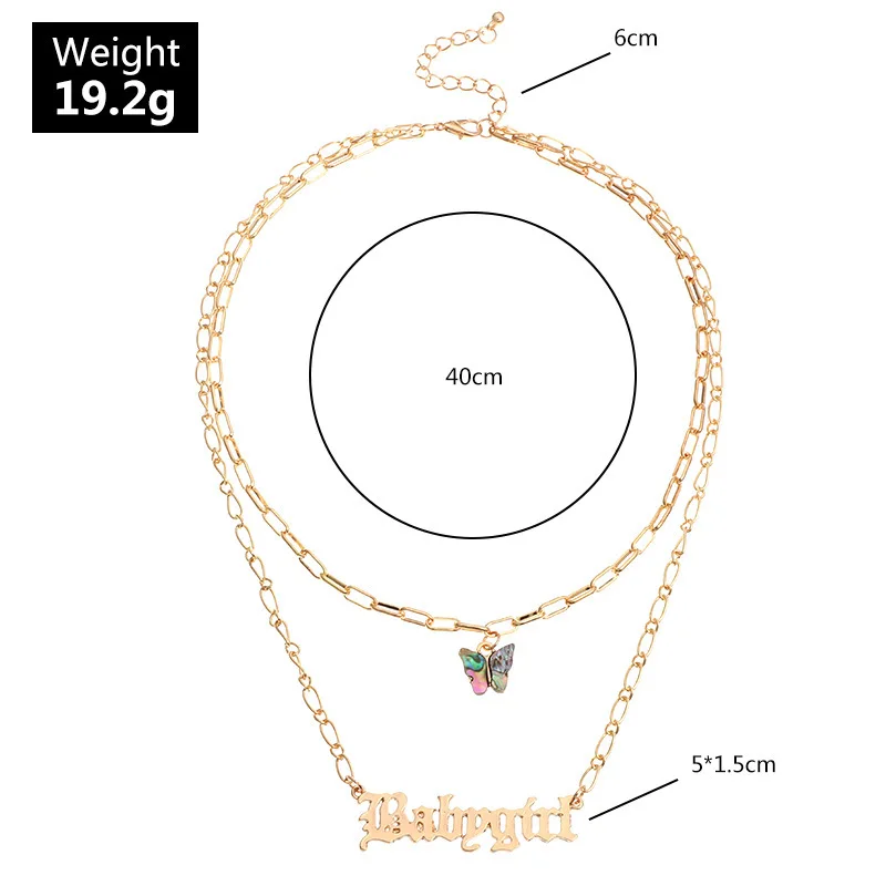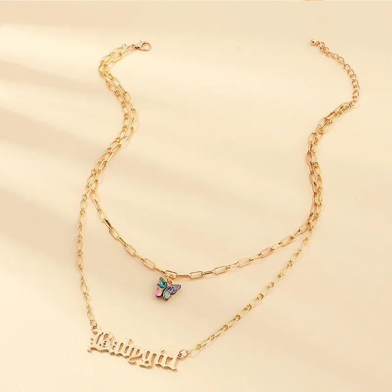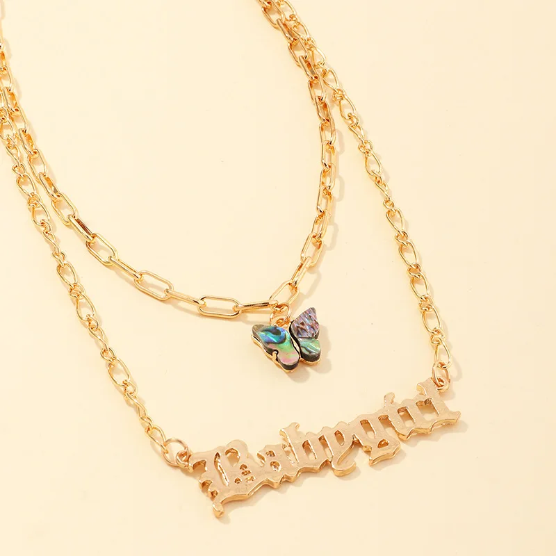 Jinleansu многослойное ожерелье цепочка с бабочкой для младенцев девочек письмо ожерелье, подвеска, колье, для женщин, подарок для девочки
