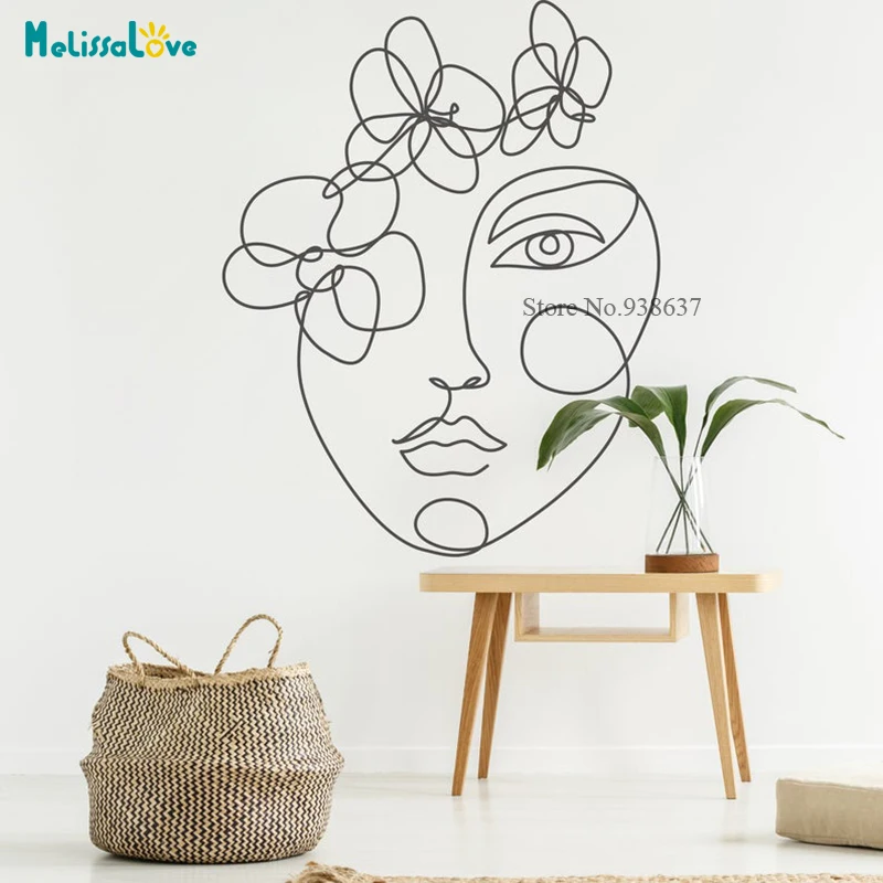 Линия Пикассо, рисунок, настенная наклейка, венок на голову, женское украшение для дома в гостиной, Съемные Виниловые настенные наклейки BB651