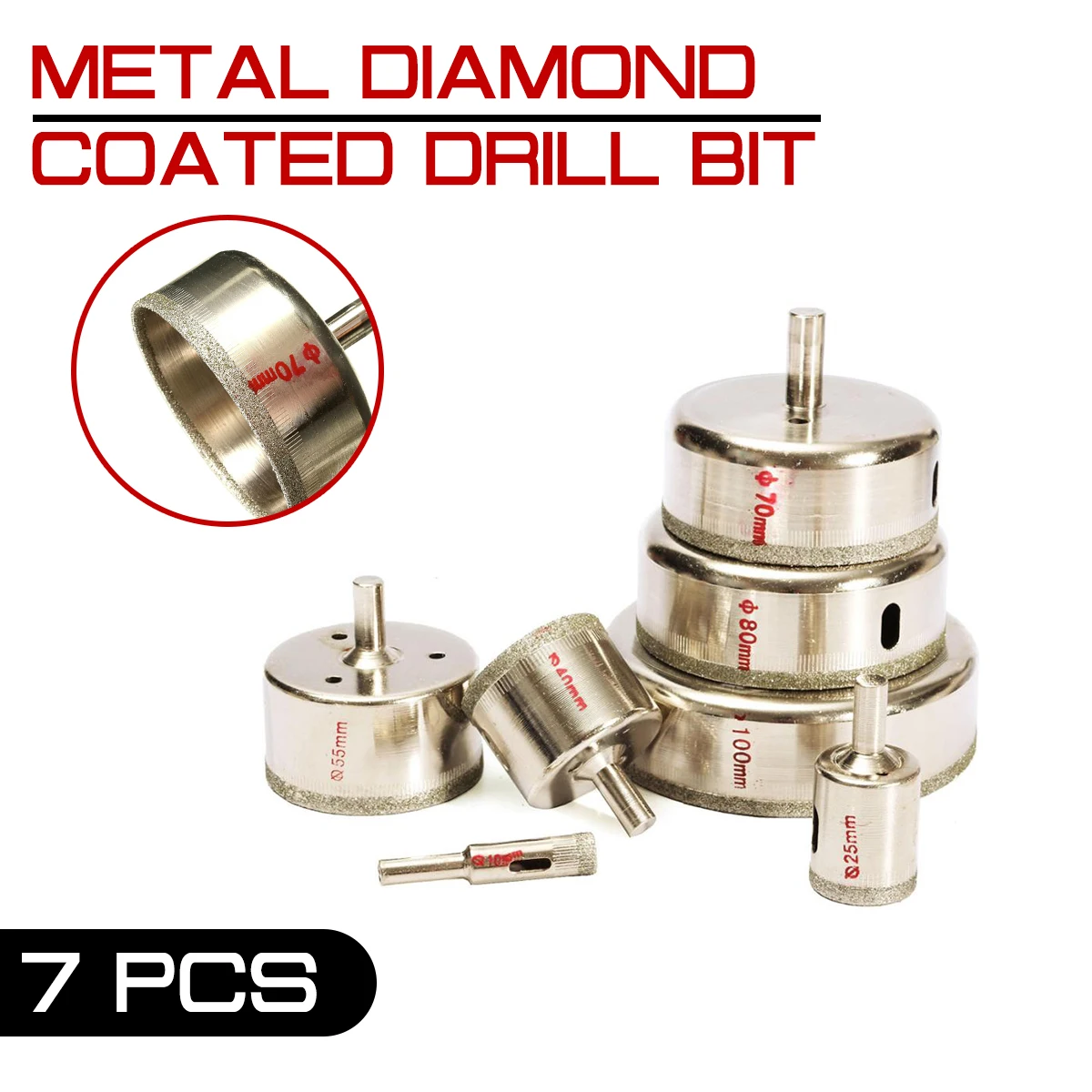 7 шт. набор сверл с металлическим алмазным покрытием 10-100 мм Мраморное ядро отверстие плитка стеклянная пила Tilling