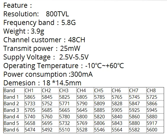 Мини-передатчик 5,8G FPV 48 каналов 25 МВт VTX-CAM с камерой 800TVL...