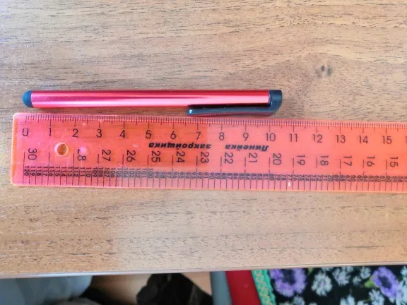 Стилус очень маленький см 10 ,не больше. Доставка очень быстрая .Вообщем дети довольны