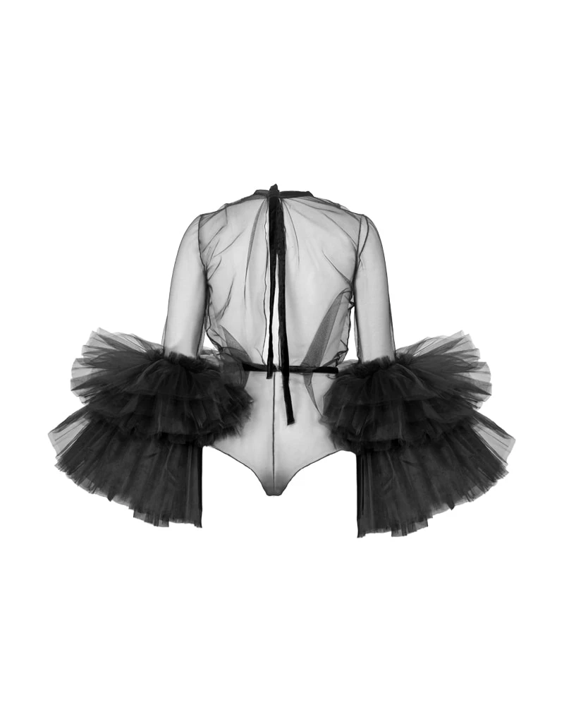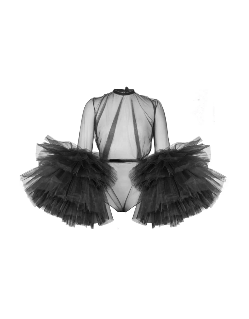 Сексуальный прозрачный красный комбинезон с пышными длинными рукавами и оборками, многоярусные тюлевые Комбинезоны для женщин