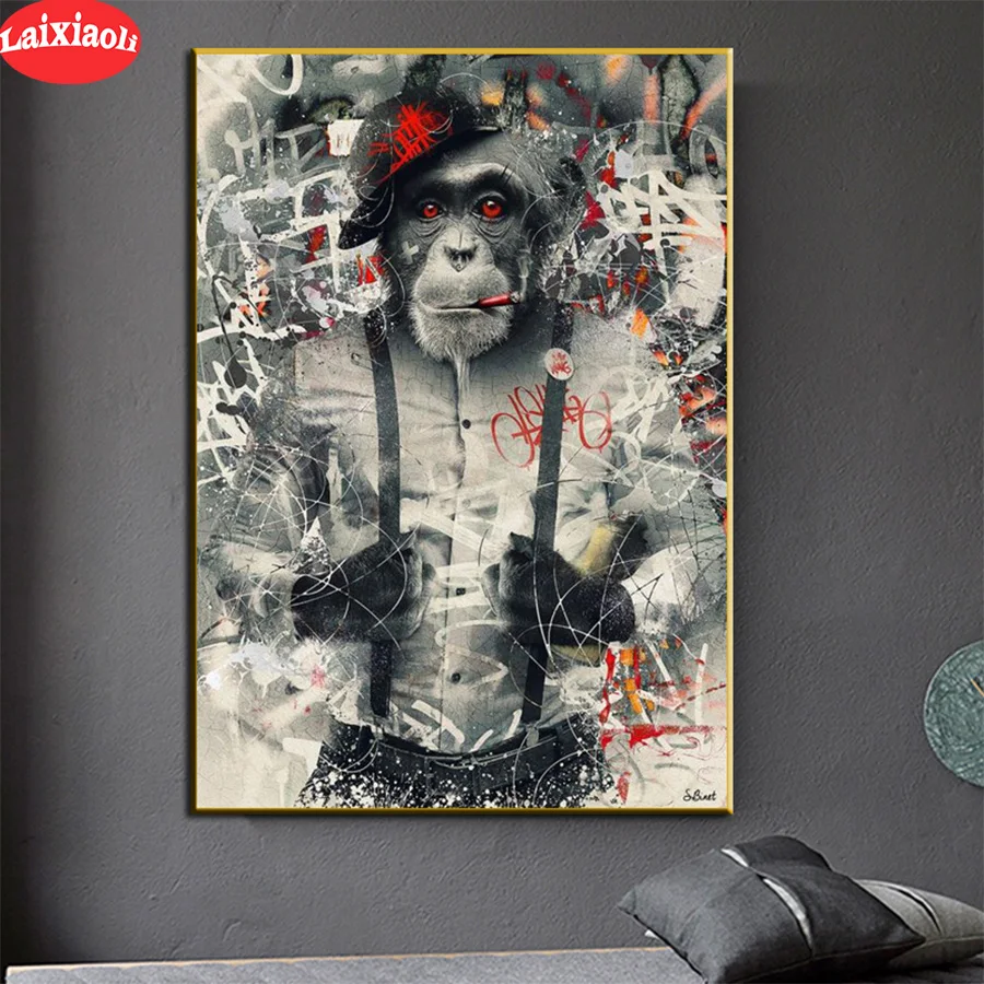 Алмазная живопись сделай сам, современное искусство, граффити, обезьяна, полная квадратная, круглая, вышивка крестиком, икона 5D, подарок, мозаика для домашнего декора