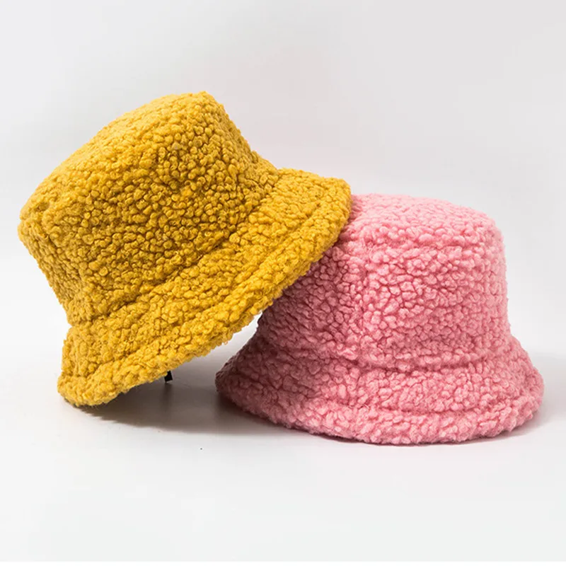 Зимняя шапка для женщин, Панама из овечьей шерсти, теплая плюшевая ...