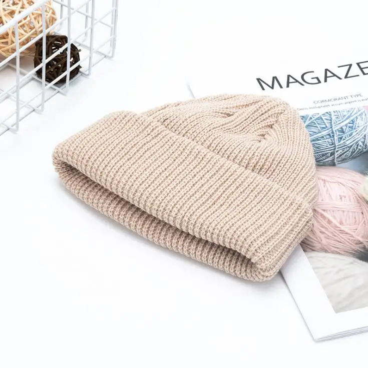 Шапка унисекс, из смесового хлопка, однотонная, теплая, мягкая, в стиле хип-хоп, вязаная, Зимняя