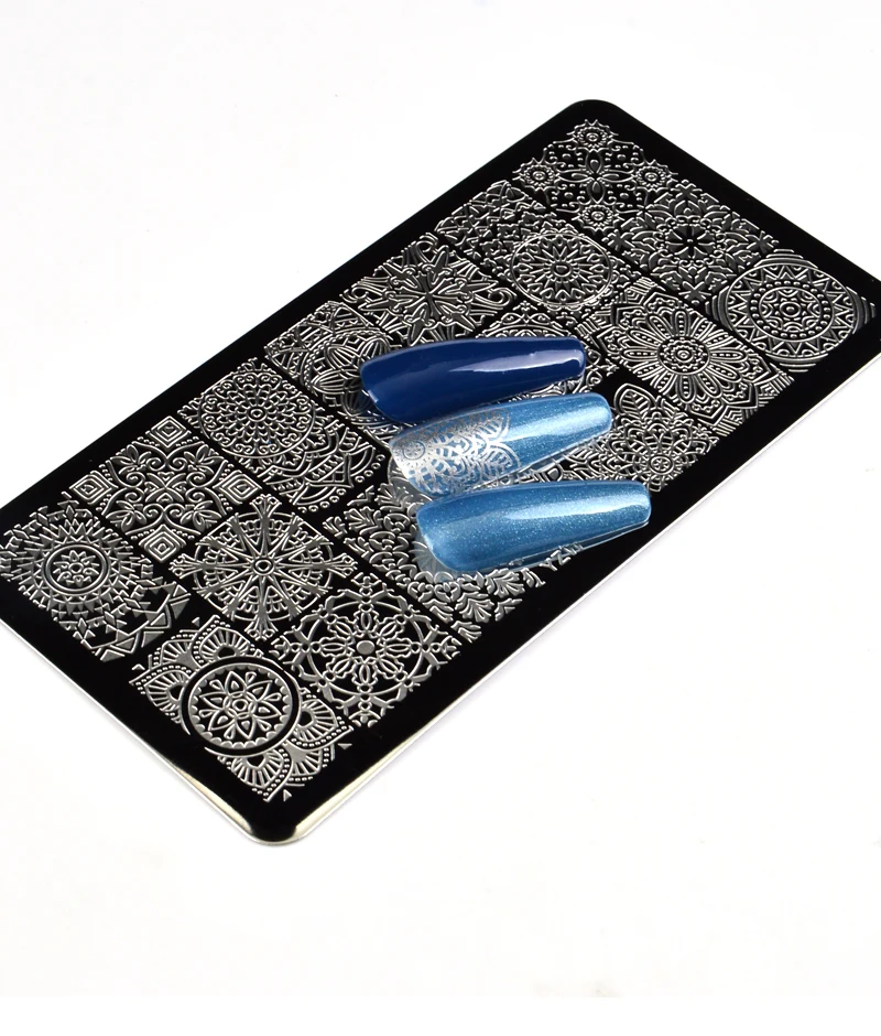 1 шт 120*60 мм/100*40 мм/56 мм штамповки ногтей ШаблоныИнструкции по использованию:1) Снимите защитную пленку2) Нанесите тиснение лаком на желаемый дизайн3) удалите излишки лака скребком под углом 45 °4) Возьмите дизайн с помощью штампа с помощью качения5) Нанесите штамп на ноготь с помощью движения прокатки6) Нанесите верхнее покрытие для более длительного эффекта