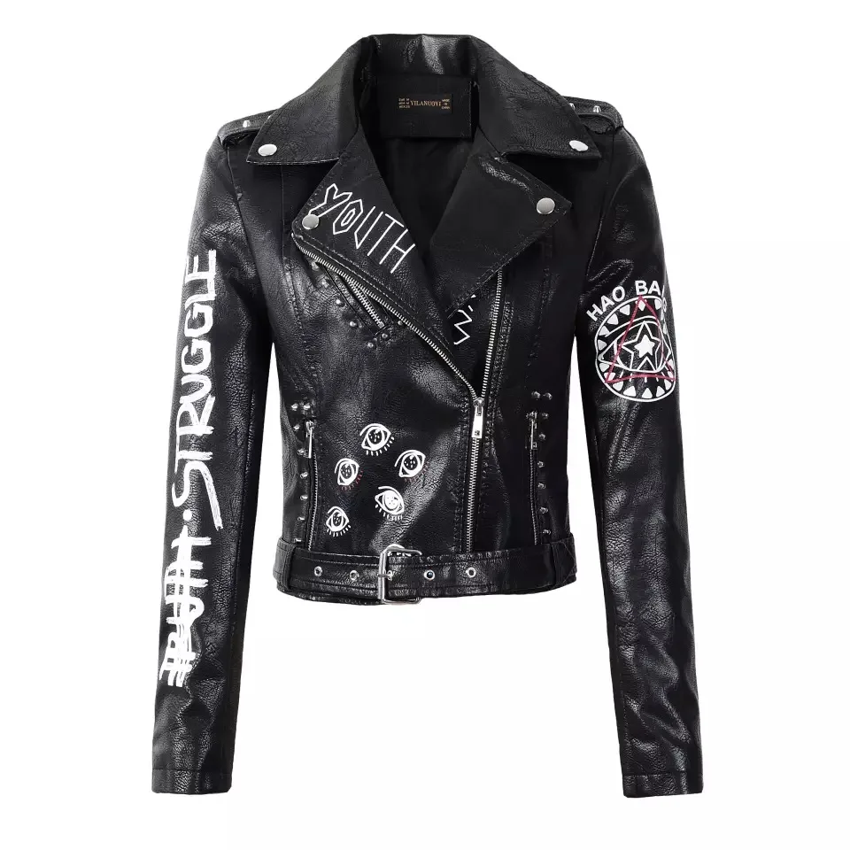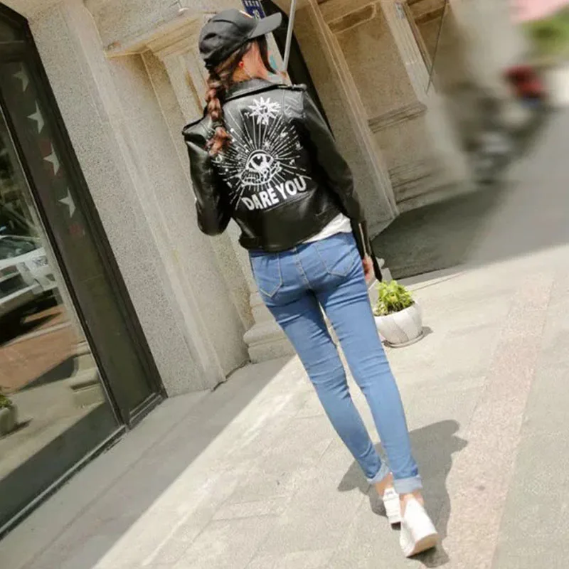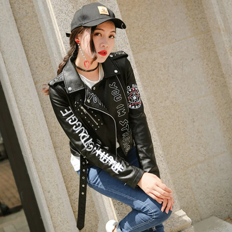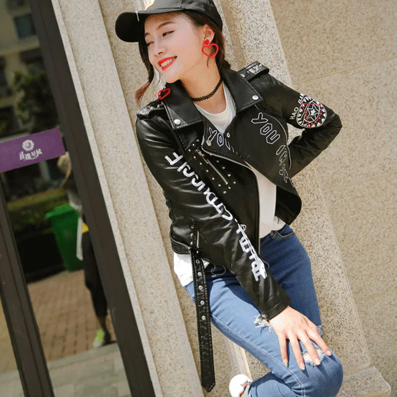 Vetement Femme, кожаная куртка, PU,Goth, Черная Женская куртка, Корейская, с длинным рукавом, с буквенным принтом, верхняя одежда, новая мода, женская одежда