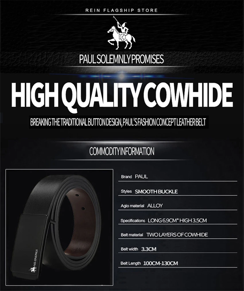 Ремень мужской из натуральной воловьей кожи, с гладкой пряжкой