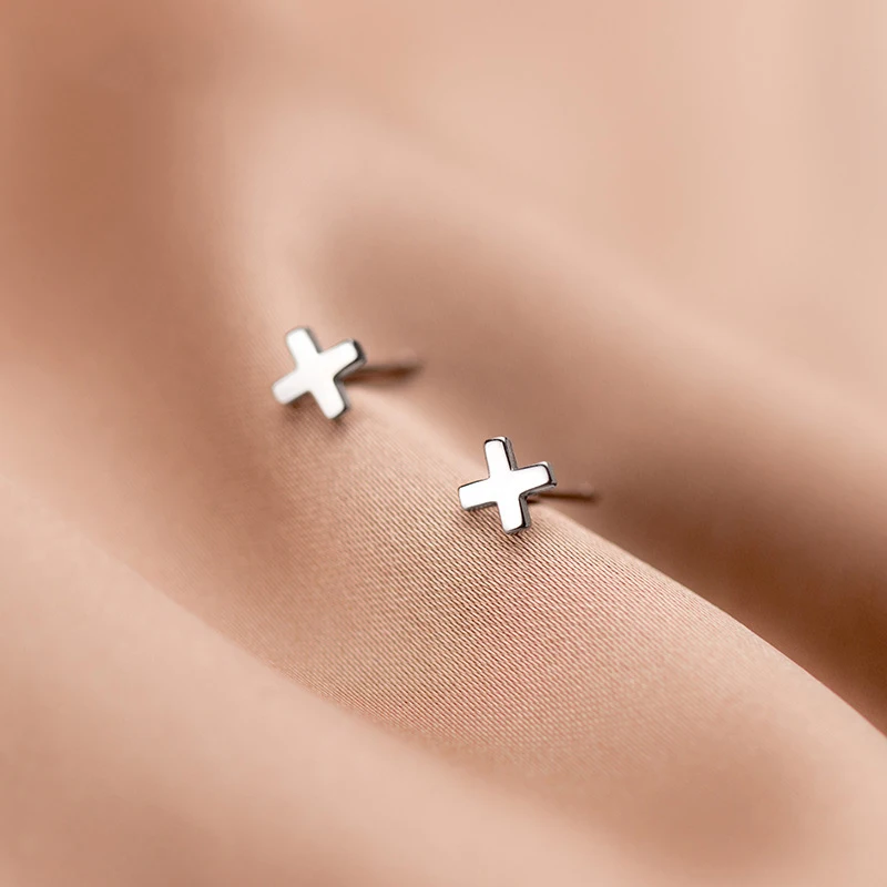 Женские серебряные серьги в виде крошечного Креста, серьги для студентов, очаровательные маленькие ювелирные изделия в подарок