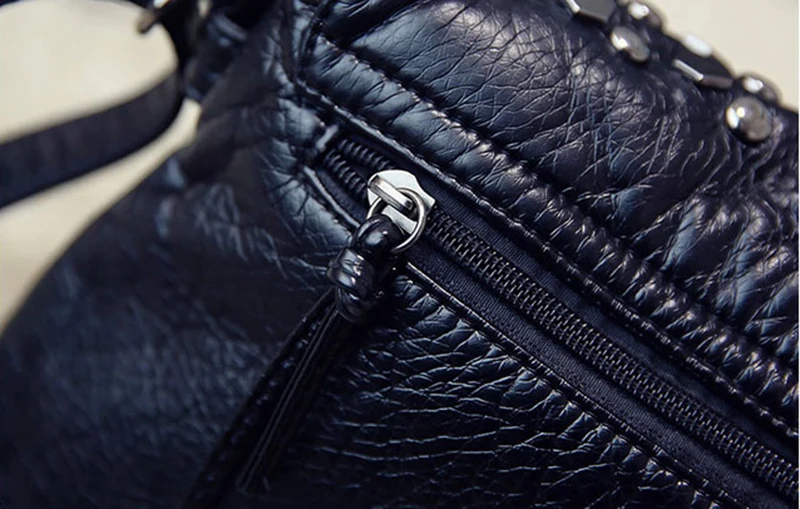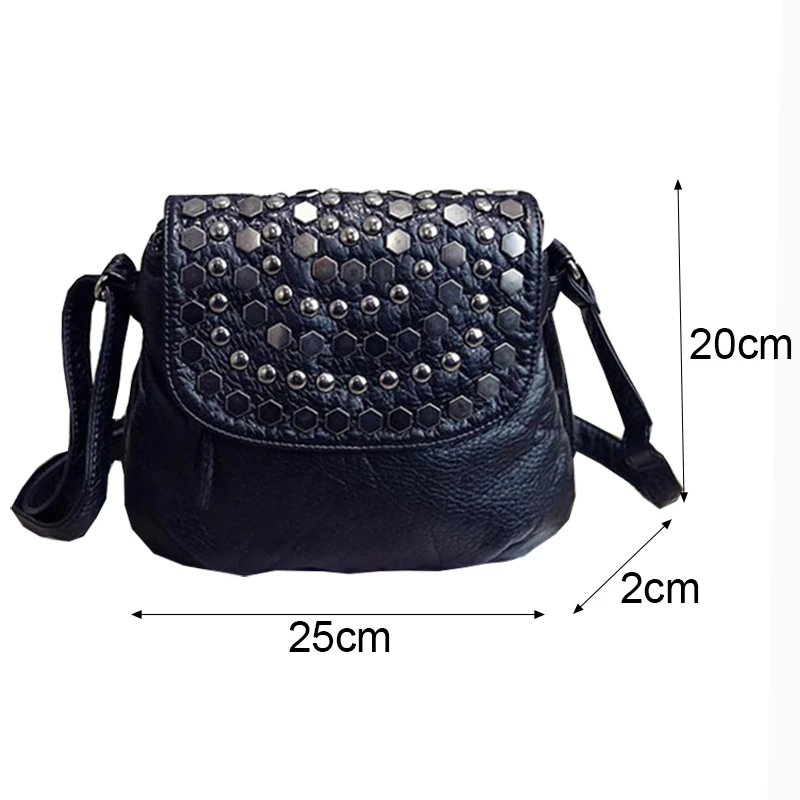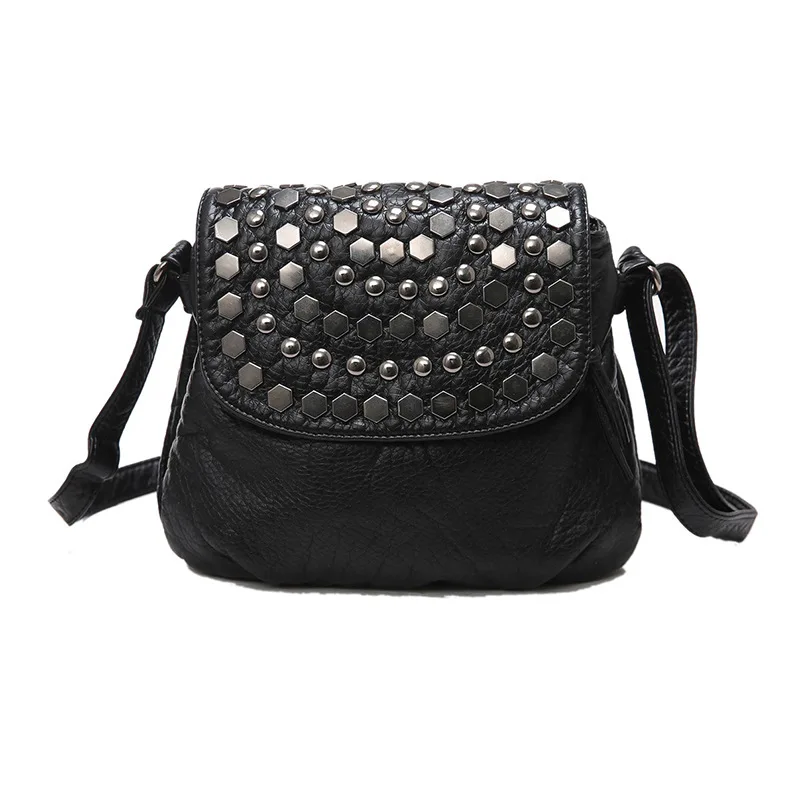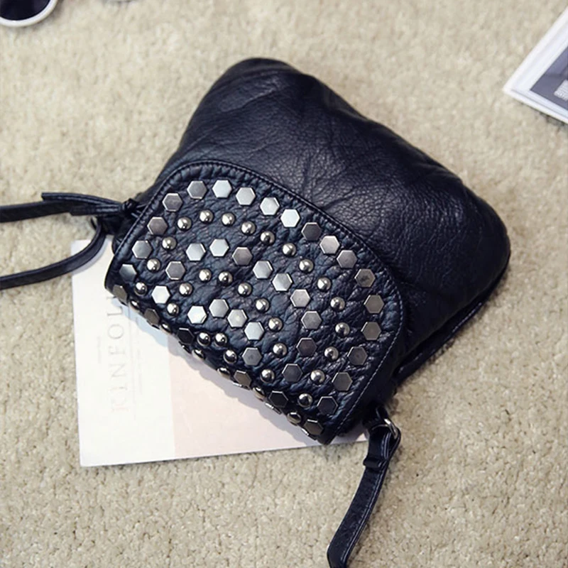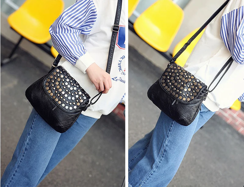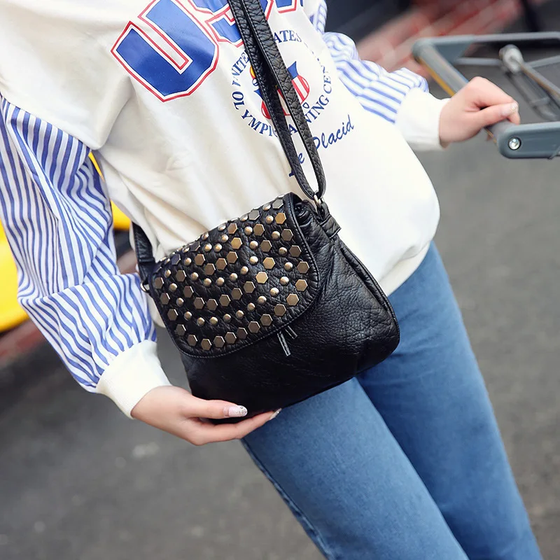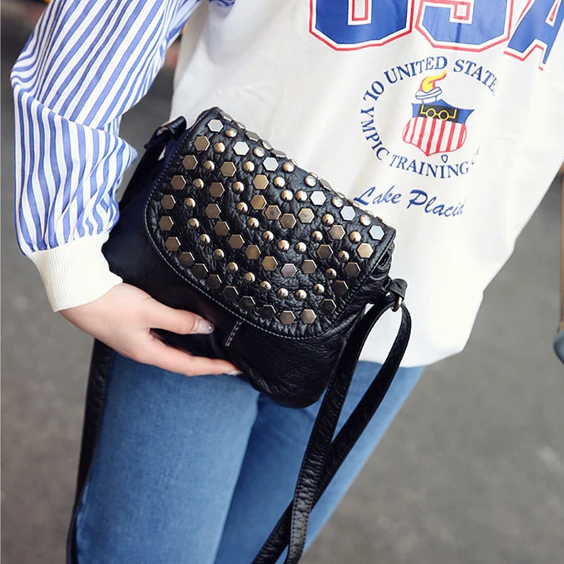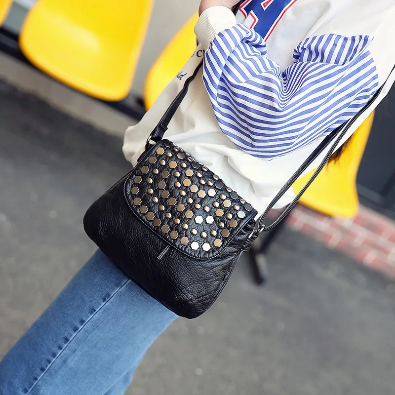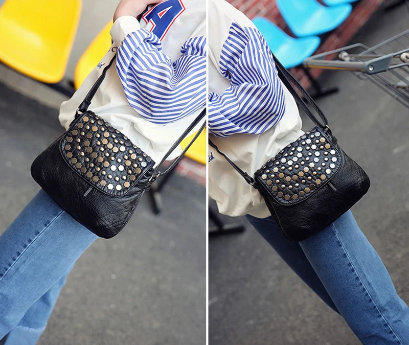 Женская сумка-мессенджер из мягкой искусственной кожи, повседневная женская сумка через плечо, Женская винтажная сумка с заклепками, черная сумка