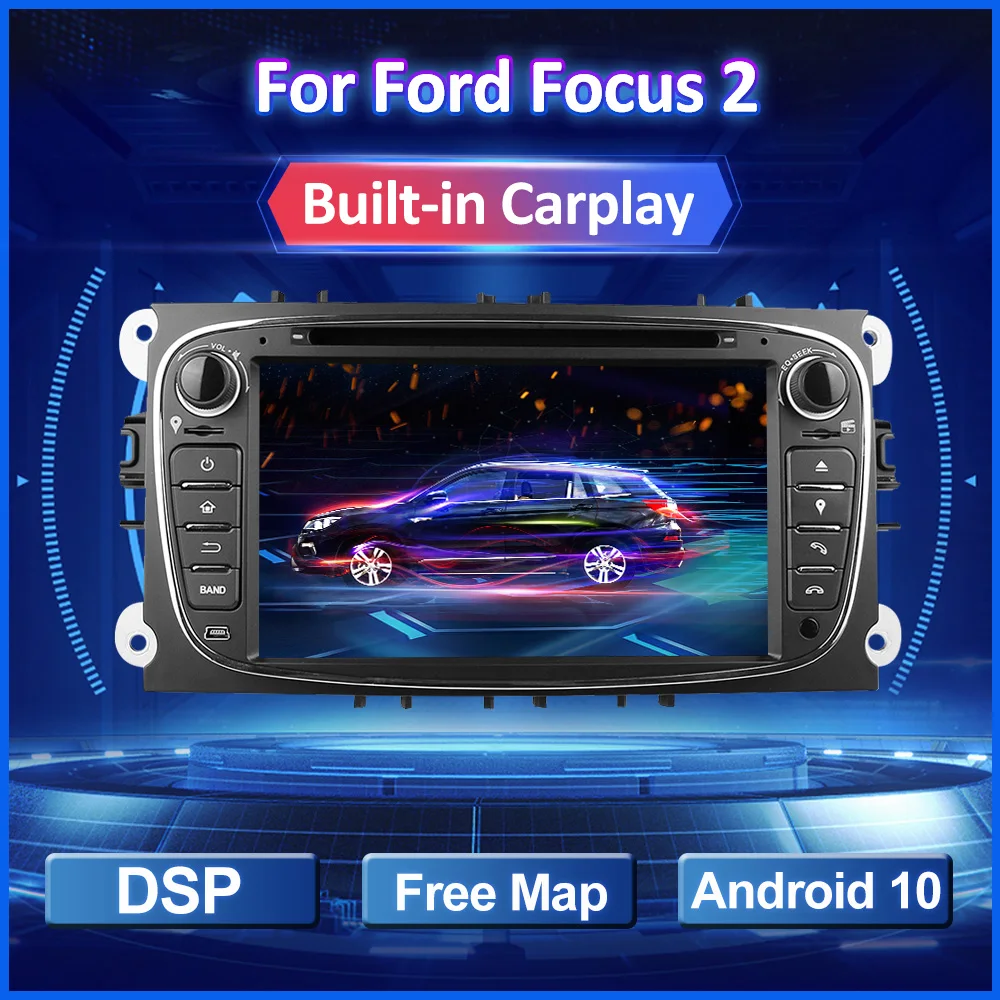 2 Din GPS Android 10 автомобиля Радио DVD для Ford Focus 2 II MK2 Mondeo S-MAX C-MAX Galaxy Fiesta Transit подключения мультимедиа Carplay