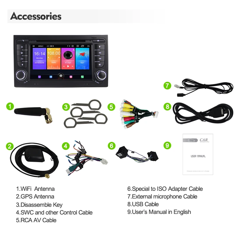 Eunavi 2 Din Автомобильный Радио мультимедийный плеер для Audi A4 B...