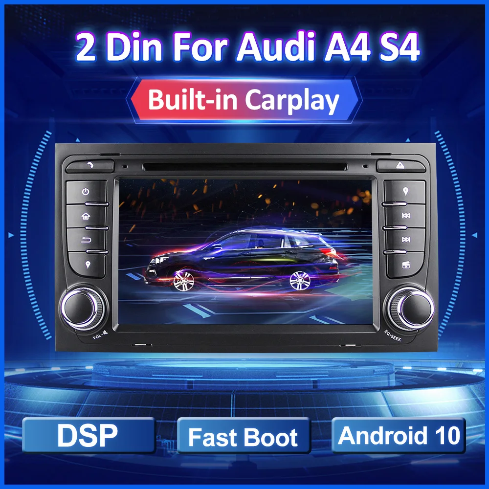 Автомагнитола 2 Din, Android 10, GPS для Audi A4 B8 S4 B6 B7 RS4 8E 8H B9 Seat Exeo, мультимедийный плеер с навигацией, DSP, Carplay, автомобильный DVD