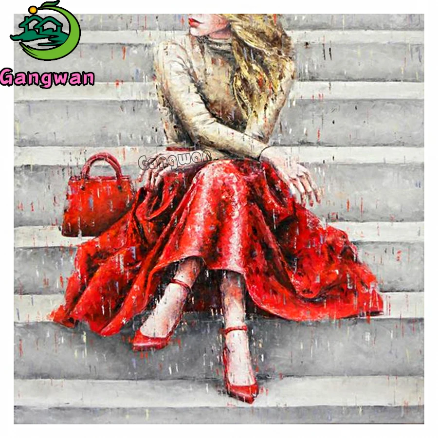 5D DIY Алмазная вышивка красная юбка для девочек Алмазная вышивка крестиком полная квадратная дрель обувь на высоком каблуке с сумкой мозаичный Декор