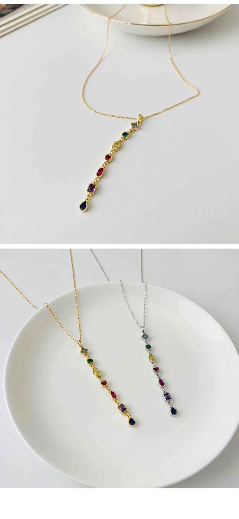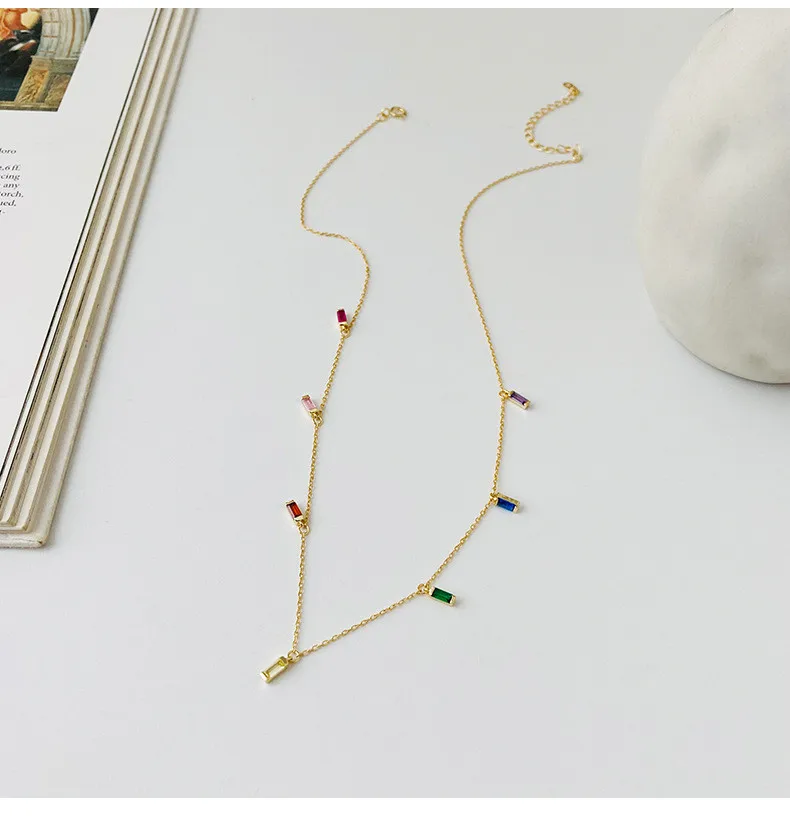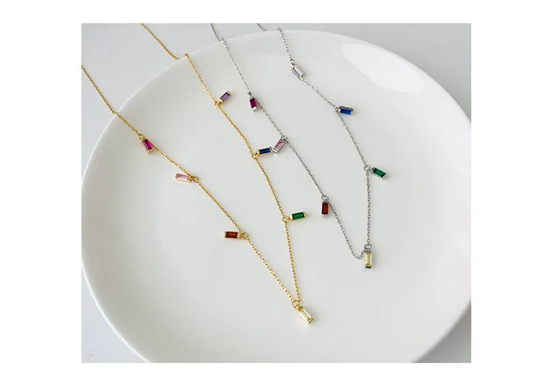 Женское длинное ожерелье из серебра 925 пробы с цирконом