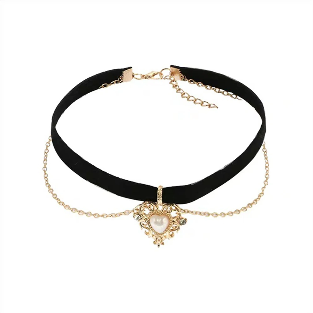Винтажное бархатное черное колье с подвеской в виде сердца, имитация жемчуга, короткое ожерелье с цепочкой для женщин и девочек, вечерние подарки