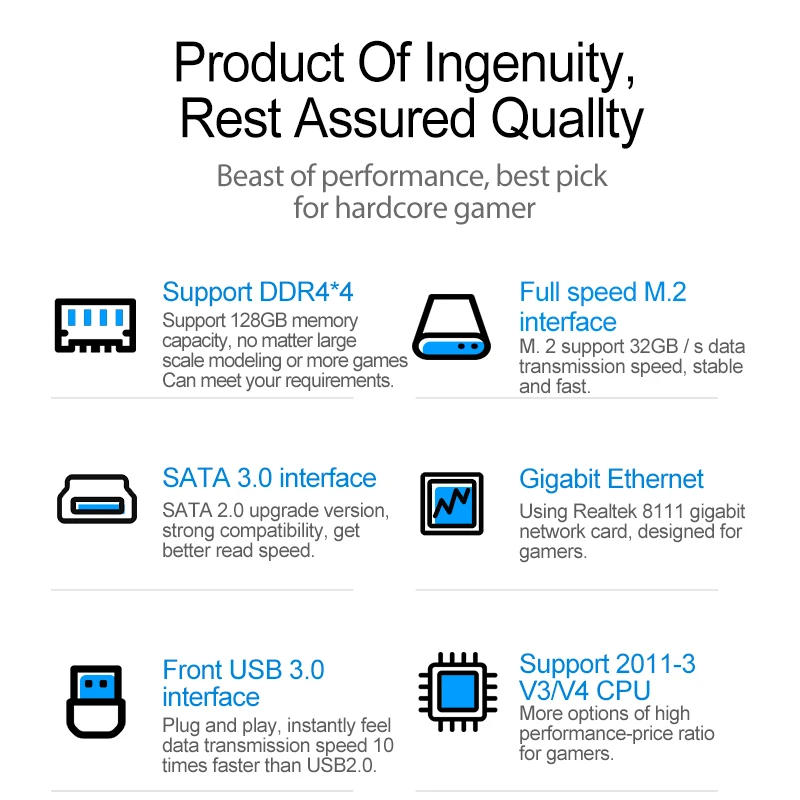 Если у вас есть другие комбинированные наборы, просто свяжитесь с нами, и мы сделаем это для вас.Особенности материнской платы:• 100% Новинка и высокое качество.• Поддержка серверной памяти REG ECC DDR4.• Поддержка M.2 NVME SSD.• Поддержка SATA3.0 , USB3.0.• Поддержка Gigabit Ethernet.• Встроенный высокоскоростной интерфейс WiFI-M.2 + интерфейс NVMe m.2.• Высокая совместимость для большего опыта работы.• Все твердые конденсаторы, тонкая работа, профессиональная стабильность.