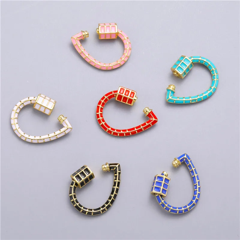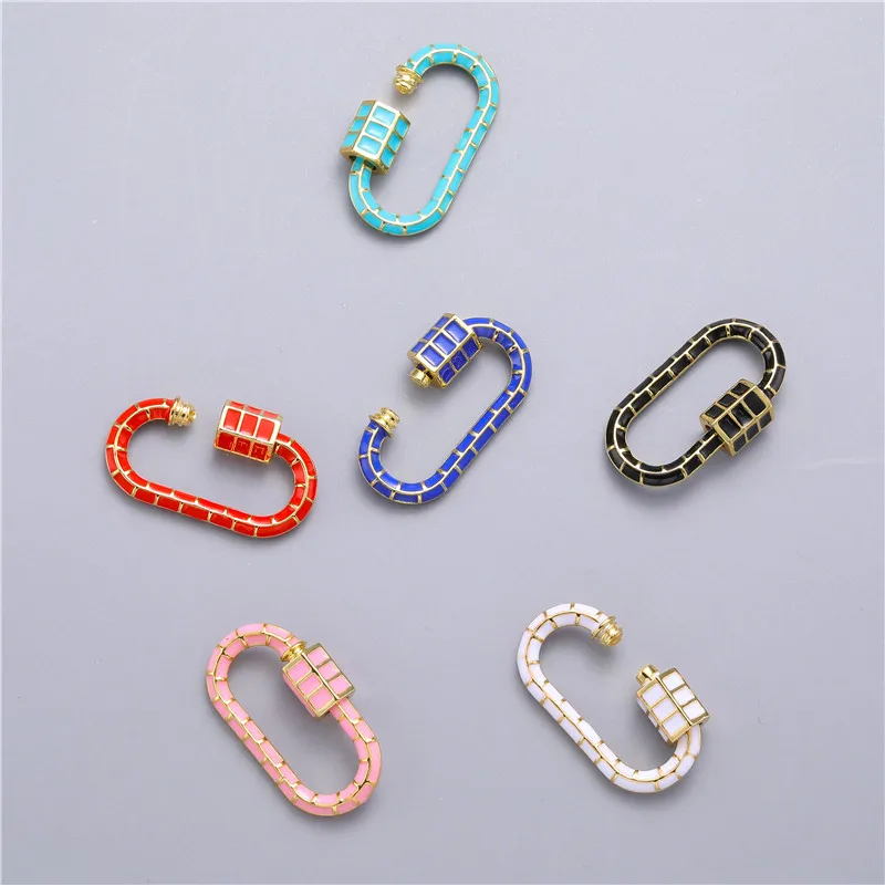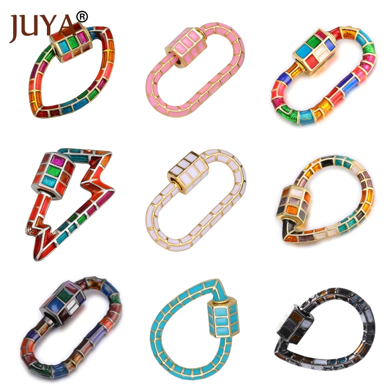 Медные эмалевые винтовые застежки JUYA, Овальный Радужный замок, карабин, Ювелирная фурнитура для женщин, аксессуары для ожерелья ручной работы